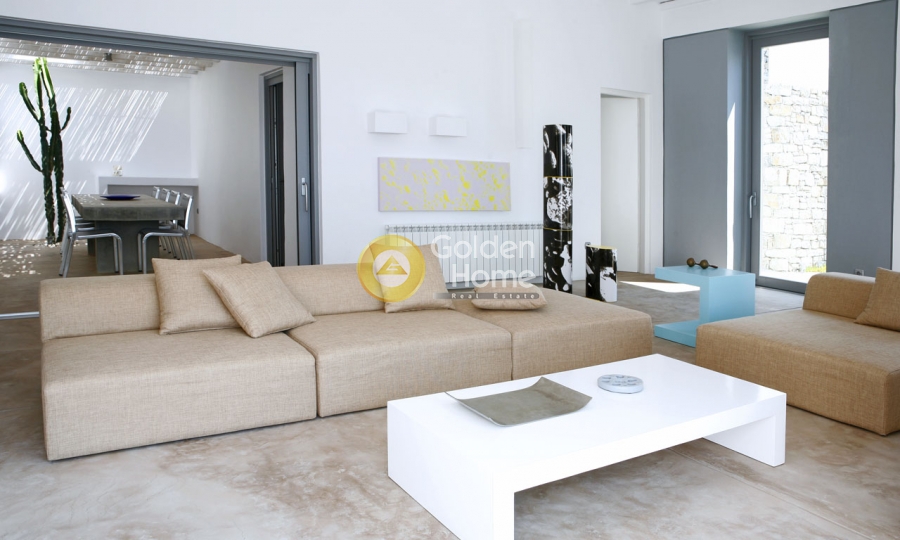 Unique Villa on a Private Estate of 7,727 sq.m. in Ftelia, Mykonos, with Helipad. Set within a rare private estate of 7,727 sq.m. in the highly sought-after area of Ftelia, this exceptional villa offers absolute privacy, unobstructed views of the Aegean Sea, and refined minimal architecture, perfectly harmonized with the natural landscape. The residence, with a total surface of 245 sq.m., features spacious living and reception areas, three elegant en-suite bedrooms, dressing areas, and a fully equipped kitchen, meeting the standards of modern luxury living. The outdoor spaces are designed with a focus on relaxation and views, including a private swimming pool (3 x 10 m), expansive terraces, and breathtaking sunset views, creating the perfect setting for entertaining and enjoying the Mykonian scenery. A standout feature of the property is the private helipad, ensuring direct access and a high level of discretion for discerning buyers. This property combines rarity, prime location, and exceptional features, making it an ideal choice both for private use and as a high-value investment opportunity in Mykonos.