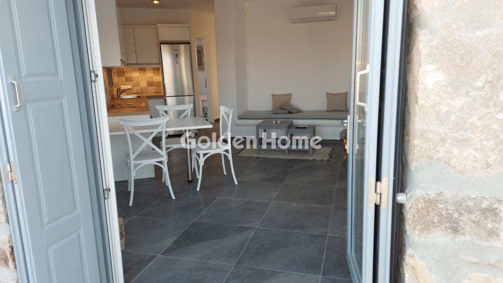 Available for seasonal rental is a bright and airy apartment in an excellent location in Kalo Livadi, Mykonos, one of the most popular and cosmopolitan areas of the island. Just a three-minute walk from the beach, the apartment features two spacious bedrooms with large built-in wardrobes, a comfortable open-plan living room and kitchen area, fully equipped with a TV, refrigerator, oven, ceramic hobs and a washing machine and dishwasher. It also includes a large bathroom, as well as balconies at the front and back, which ensure natural light and good ventilation. The property has water tanks and filters, while there is free parking on the street directly above the house. It is available either for the summer season or for annual rental at the same price.