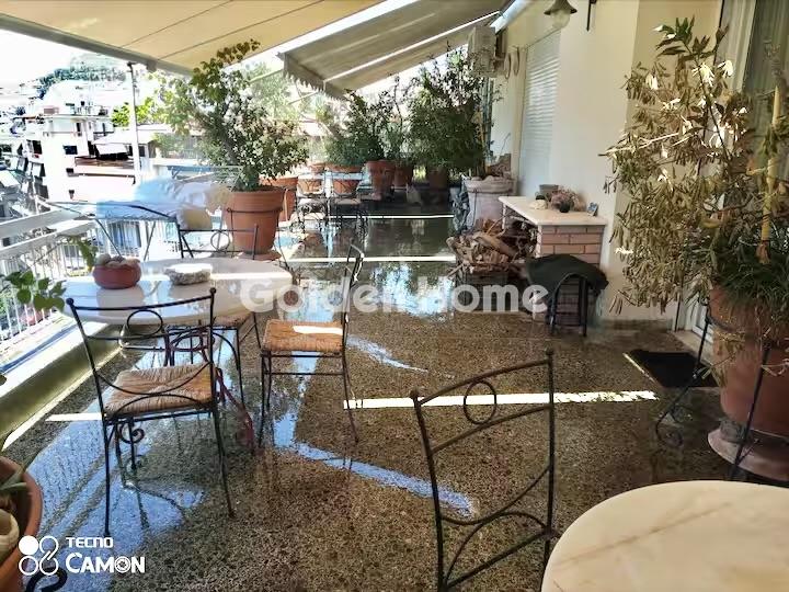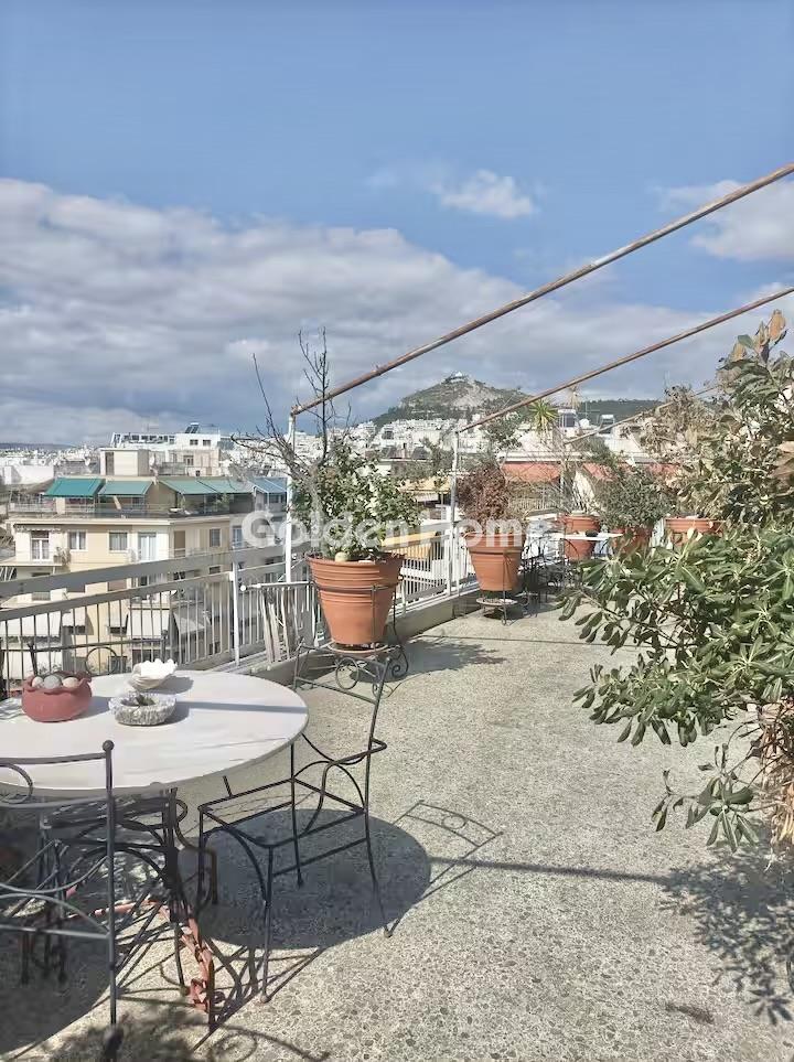 For rent an excellent 5th floor apartment, 126 sq m, in the heart of Pagrati. This is a fully furnished and equipped "masterpiece" residence in one of the most vibrant and culturally, artistically, spiritually, historically and gastronomically rich areas of the center of Athens, ideal for those seeking high aesthetic accommodation. The apartment has three bedrooms, a living room, a dining room, a kitchen, a bathroom and a WC. Its main feature is the huge verandas of a total area of 100 sq m, with marble tables, which are accessible from all areas of the apartment. The verandas offer a stunning view of Lycabettus Hill and the Pagrati Grove, which is located directly opposite. Visit it and enjoy it! [Can be rented without furniture and equipment].