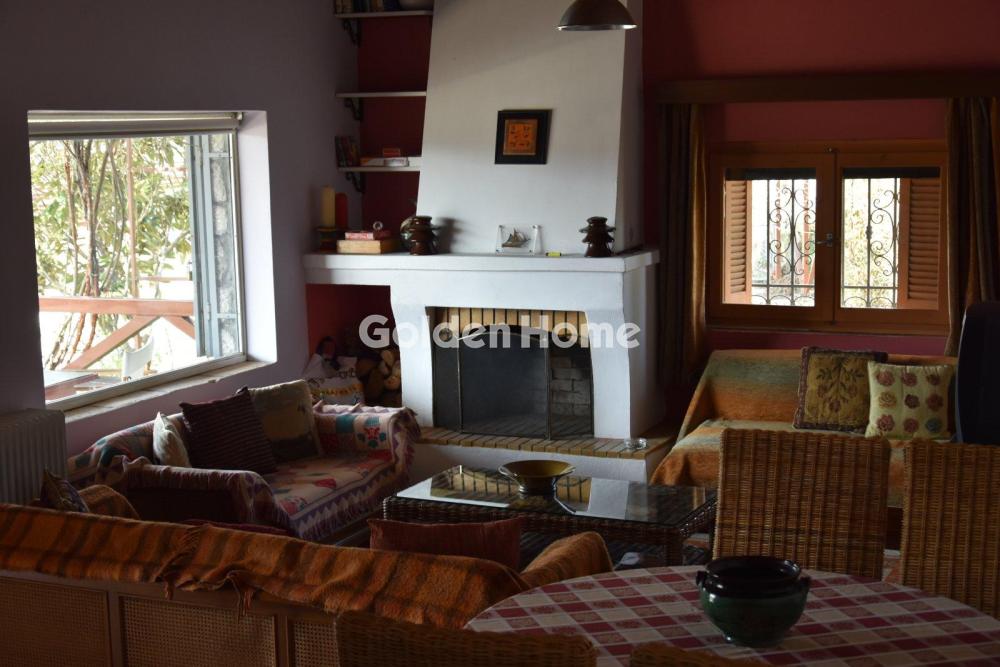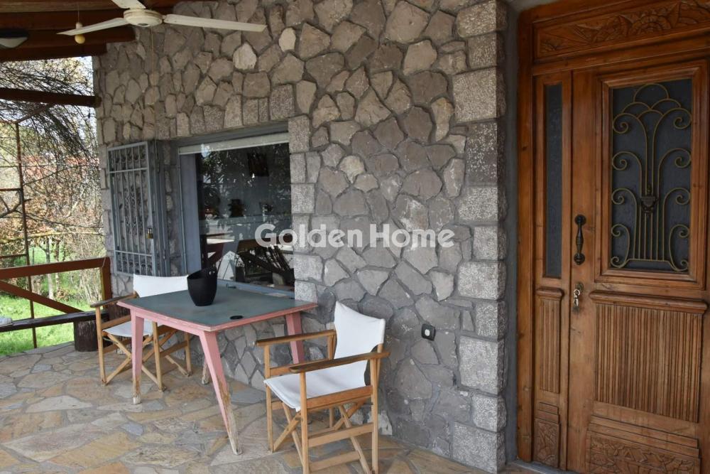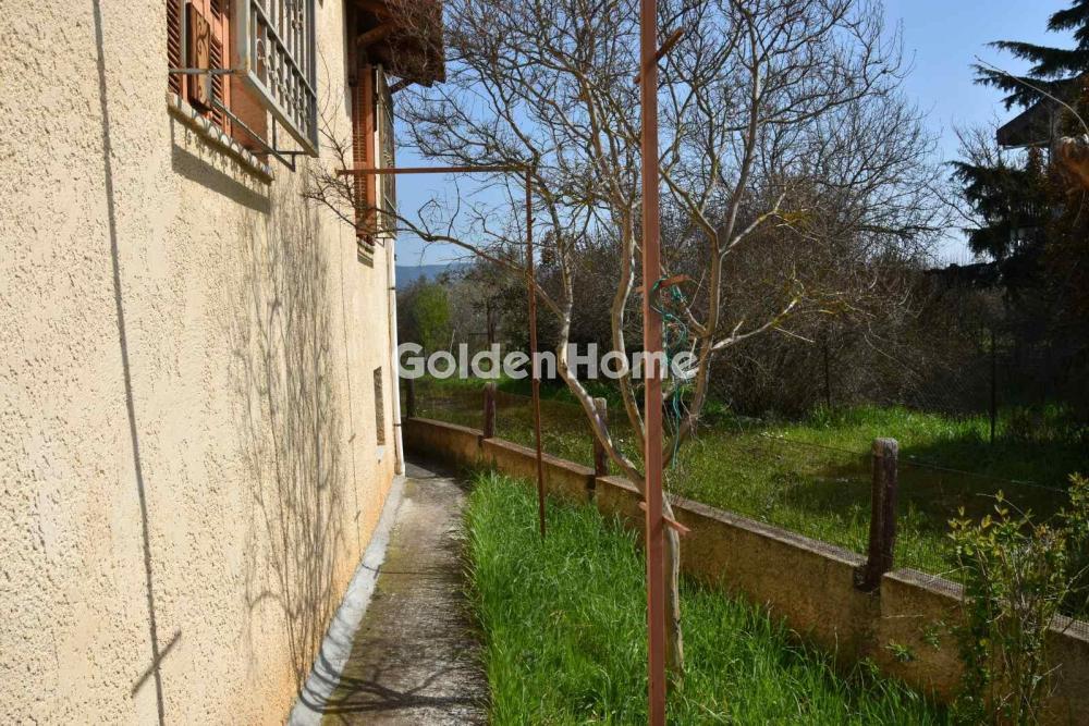 A bright, corner house is available for rent in a rural zone, surrounded by a peaceful and lush green environment. The property stands out for its excellent construction quality and its beautifully landscaped garden, offering absolute tranquility and stunning views of the mountains, forest, and the natural landscape. Bedrooms: 2 Bathroom: Large Living Room – Dining Area: Open-plan layout with fireplace Kitchen: Independent Stairs: Internal Flooring: Tiles Window Frames: Wooden Fully furnished All electrical appliances included Fireplace Heating: Central heating with oil burner Cooling: Ceiling fans Power Supply: Single-phase Sewage: Septic tank Beautiful garden with abundant greenery Verandas and balconies with lovely views Open parking space (1 spot) Access via asphalt road Very green and quiet area Ideal as a holiday/second home Public transport: OSE (train line) View: Mountain, forest, unobstructed