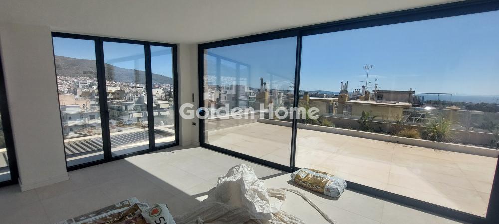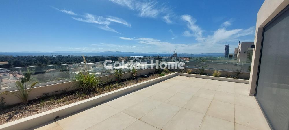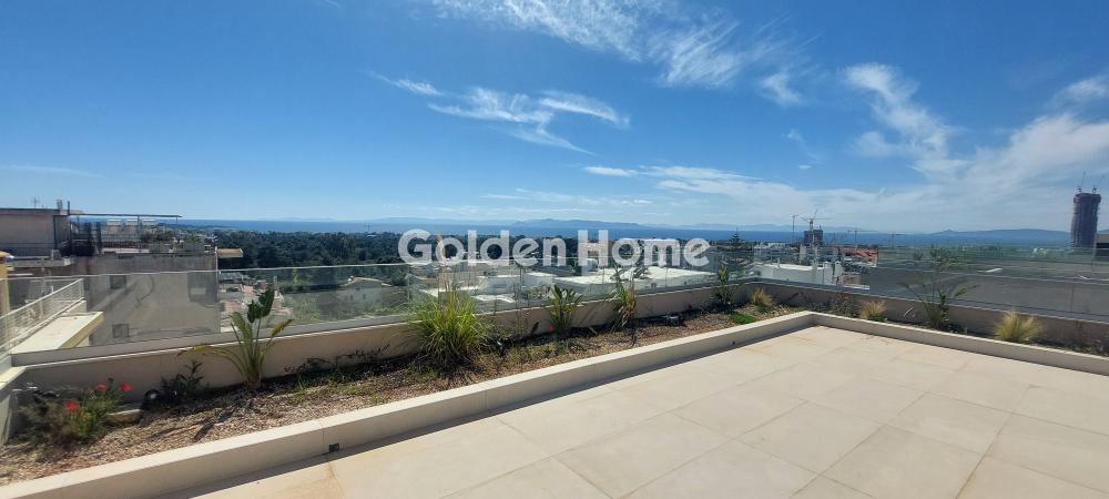 Amazing 3rd floor maisonette, three levels in an excellent location in Glyfada Golf, newly built, with underground garage and storage. On the ground floor of the maisonette there is a living room, kitchen, dining room and 2 master bedrooms, on the upper floor there are two masters and on the last there is a large space that can be used as either a bedroom or an office or a guest house. The view is excellent, sea and mountain, the verandas are very large, the spaces are very comfortable and modern construction.