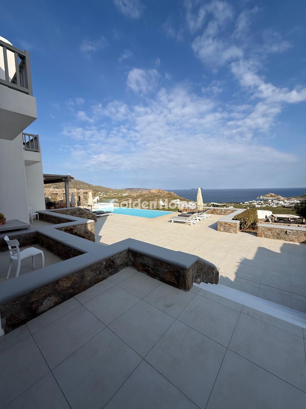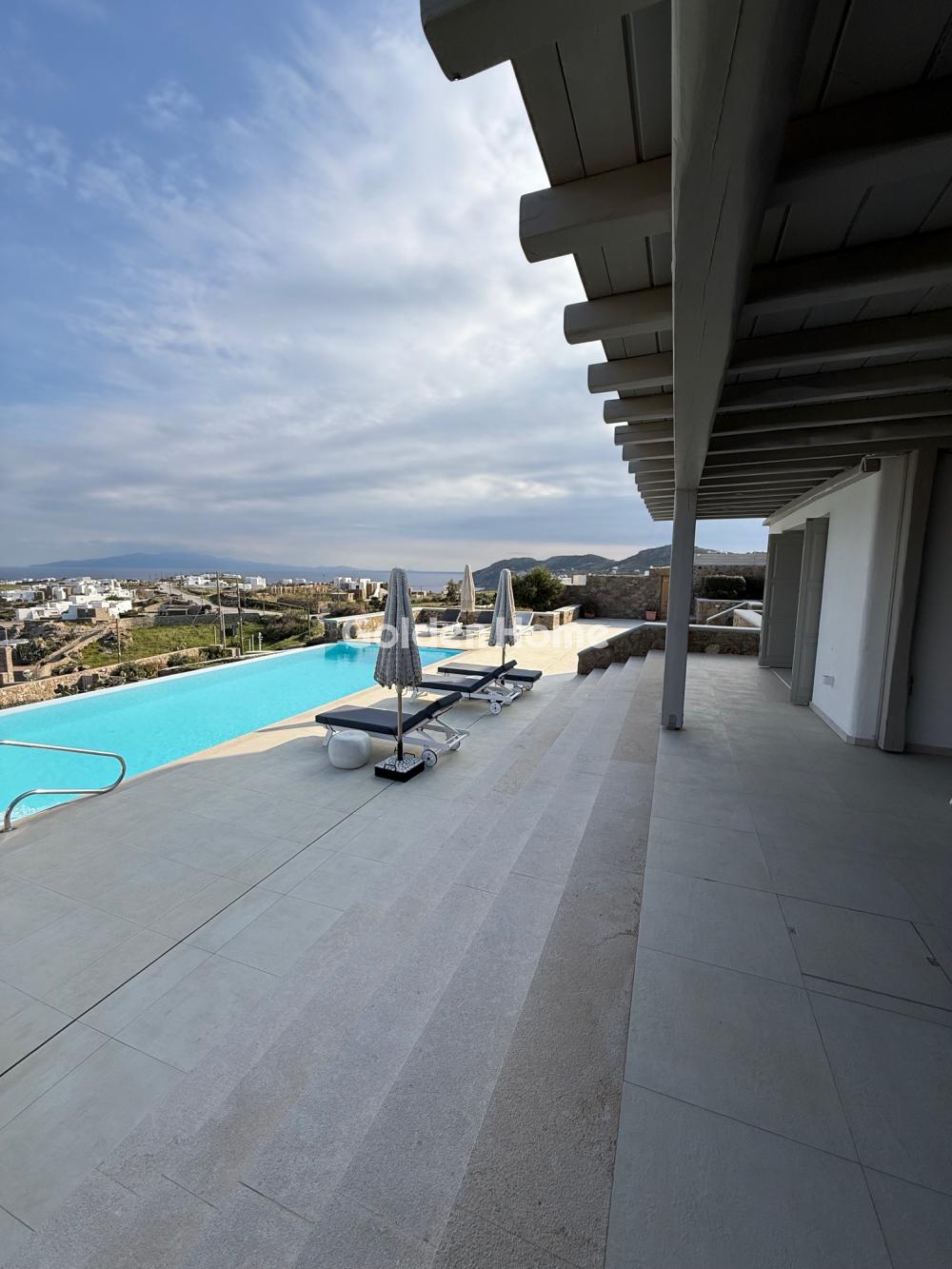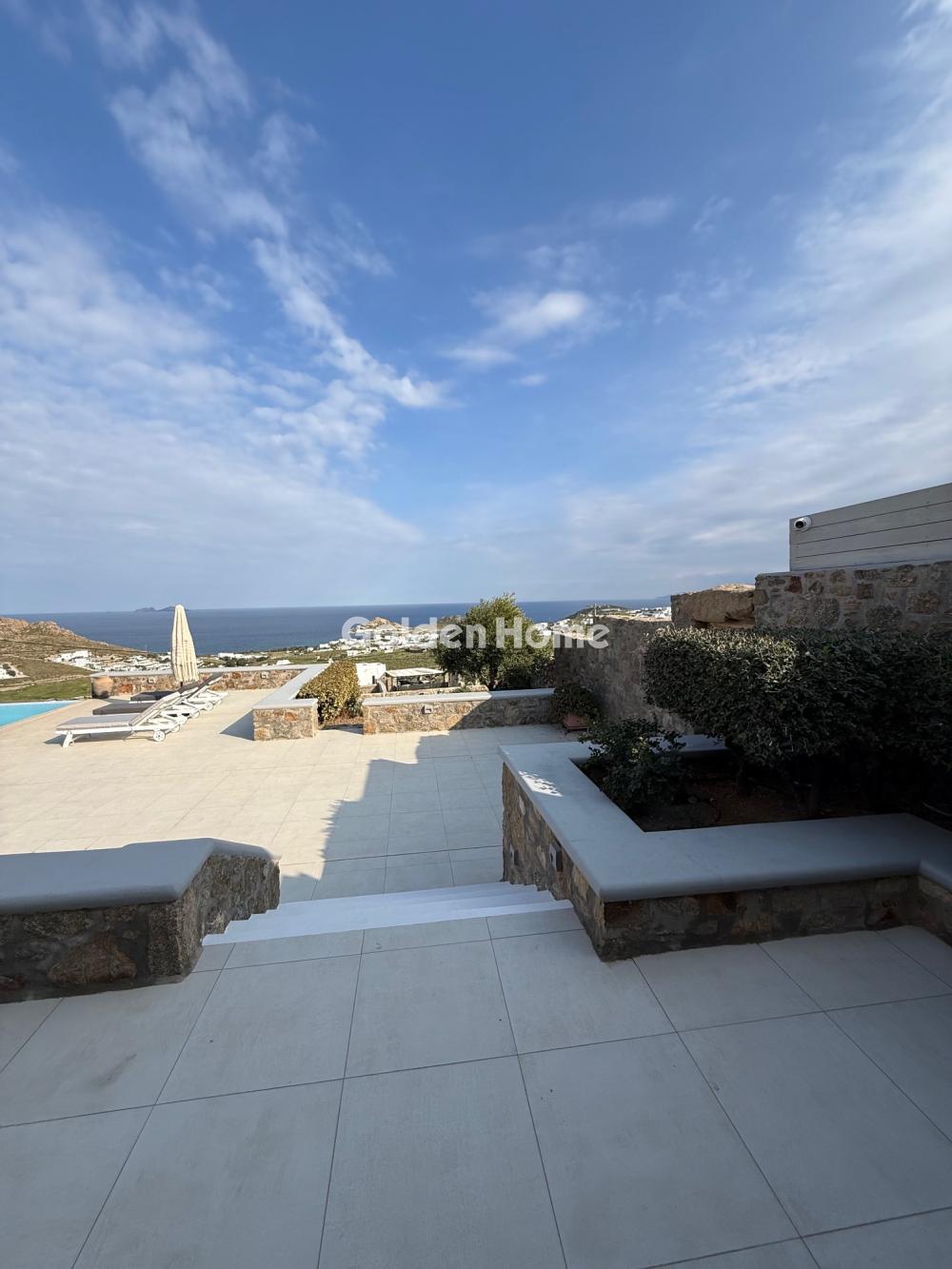 Luxurious newly built villa for rent in the Kalafatis area of Mykonos. The residence combines modern architecture with absolute privacy and unobstructed views of the vast blue Aegean Sea. The villa features: 5 spacious Master bedrooms with plenty of natural light, a large private pool with panoramic views, a fully equipped gym area, as well as extensive outdoor areas with a second outdoor kitchen and BBQ area. The unique location offers tranquility, while at the same time being within walking distance of Chora, as well as all the magnificent beaches of the south side of Mykonos. It is an ideal choice for both owner-occupation and for high-yield investment.