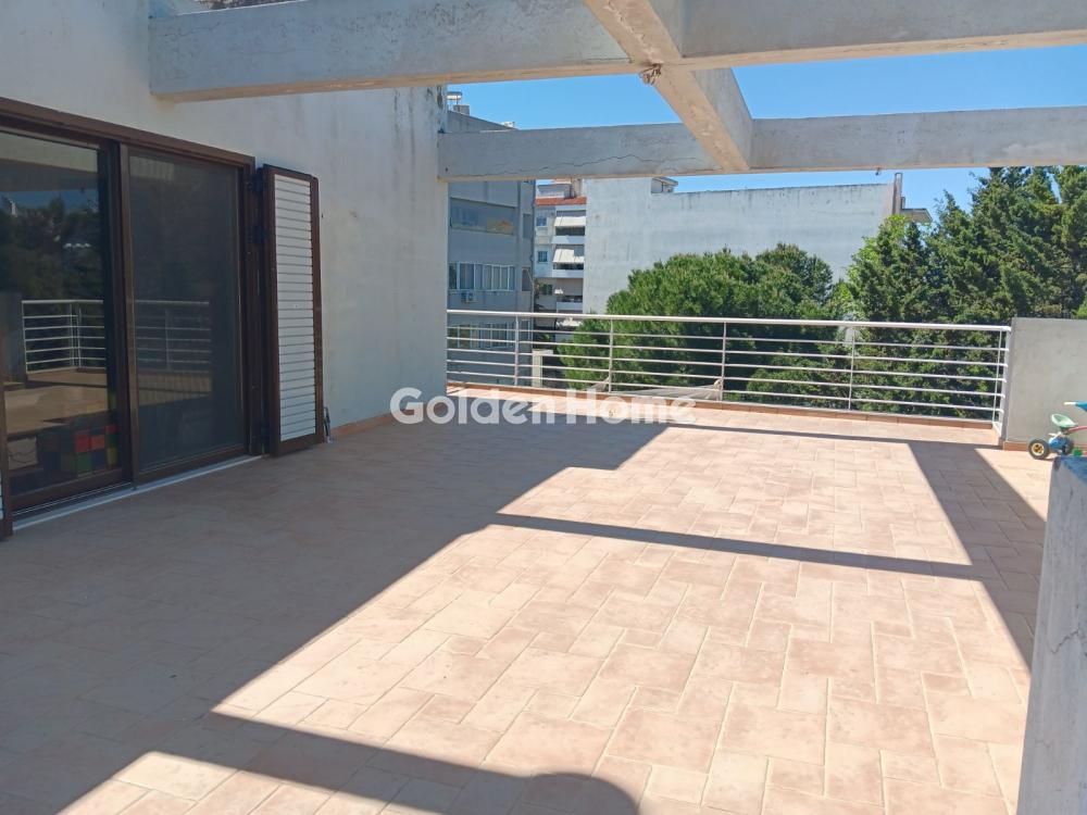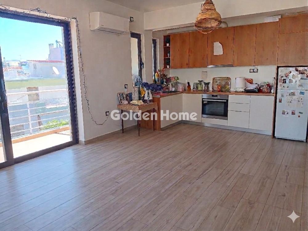 Apartment for rent, 50 sq.m., featuring 1 bedroom, an open-plan living room and kitchen, located on the 3rd floor. It includes a fireplace, a large veranda, and balconies surrounding the apartment. Equipped with a solar water heater and air conditioning units for heating. Parking space available in the pilotis. No elevator. It is located near the Special Gymnasium–Lyceum for the Deaf and the General Gymnasium–Lyceum.
