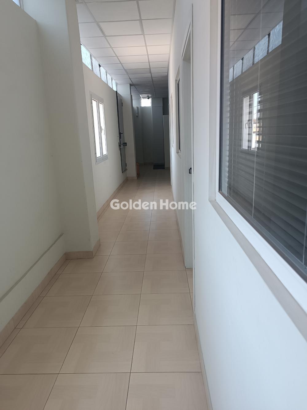 Commercial space for rent, 1,500 sq.m., 1st floor, ceiling height 5.15 m, with overhead crane, office areas, 2 WCs plus 1 accessible (ADA-compliant) WC, kitchenette, security cameras, loading/unloading ramp, and open parking spaces, located in the Votanikos area.