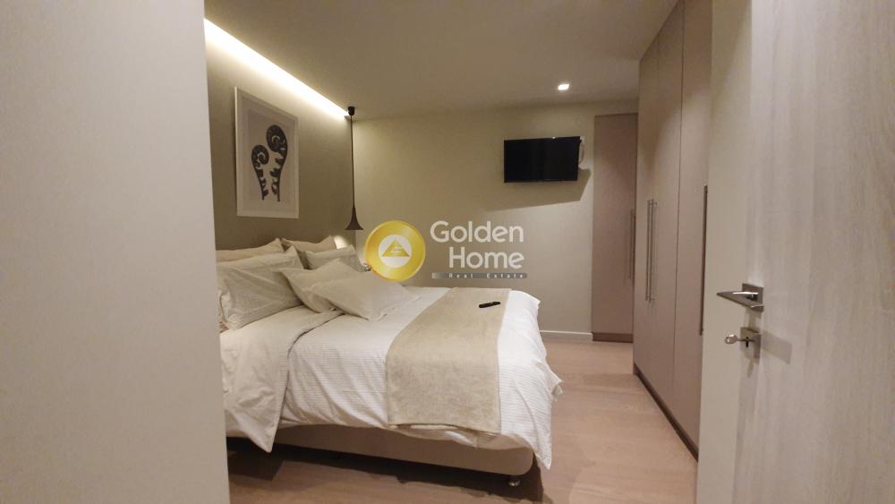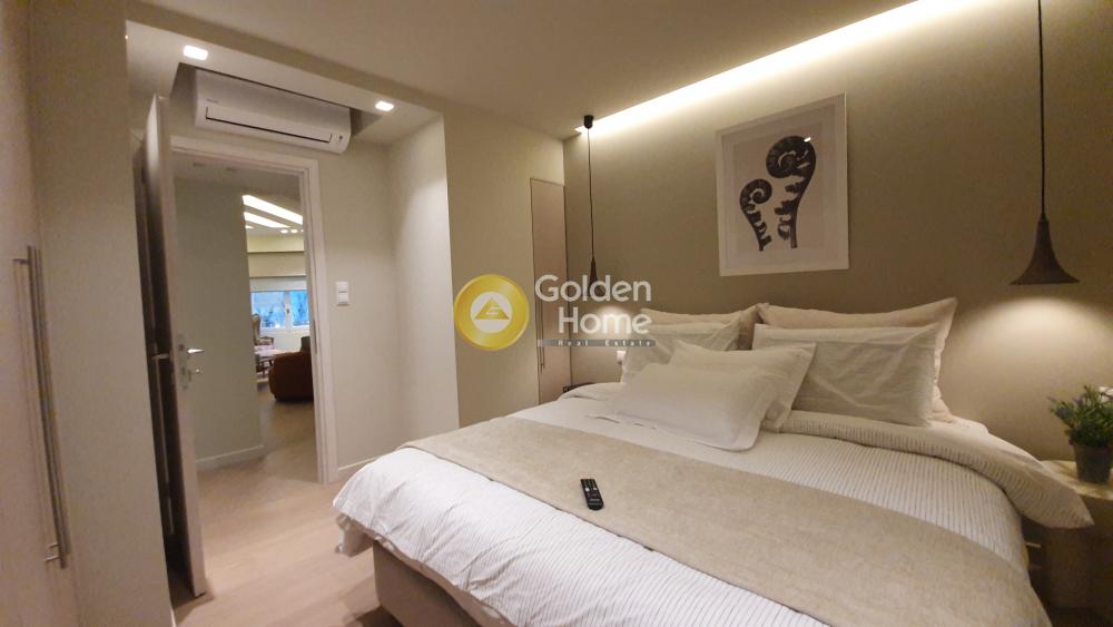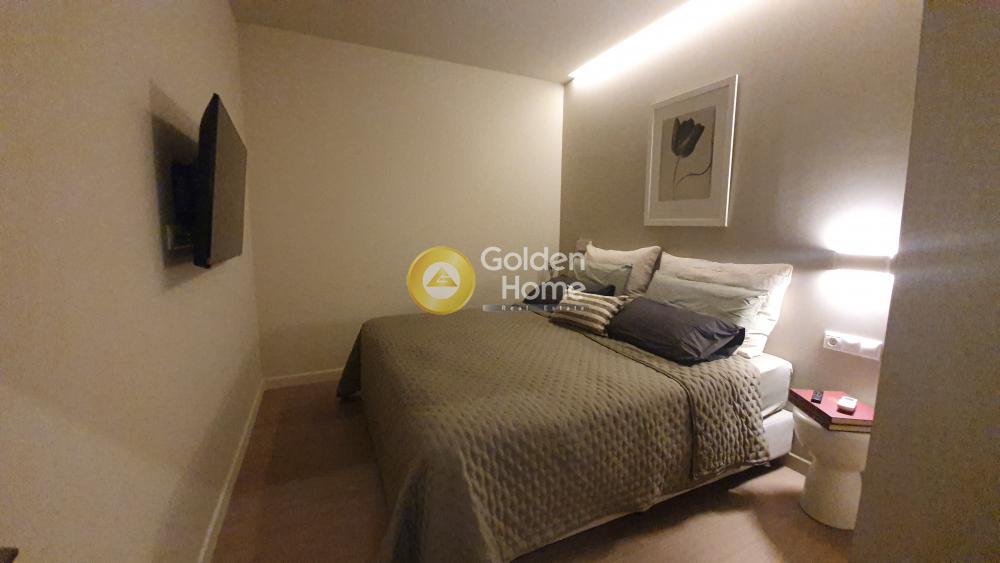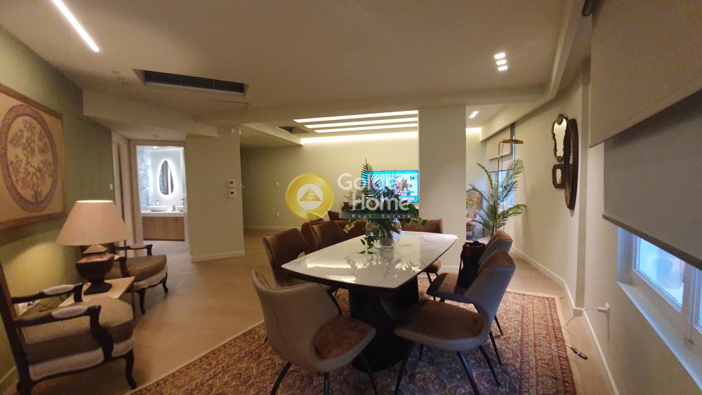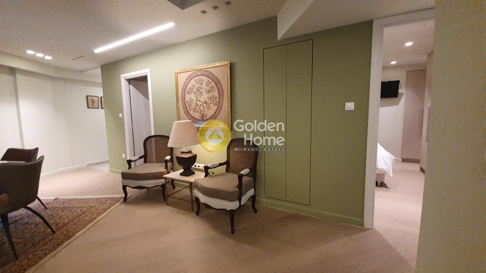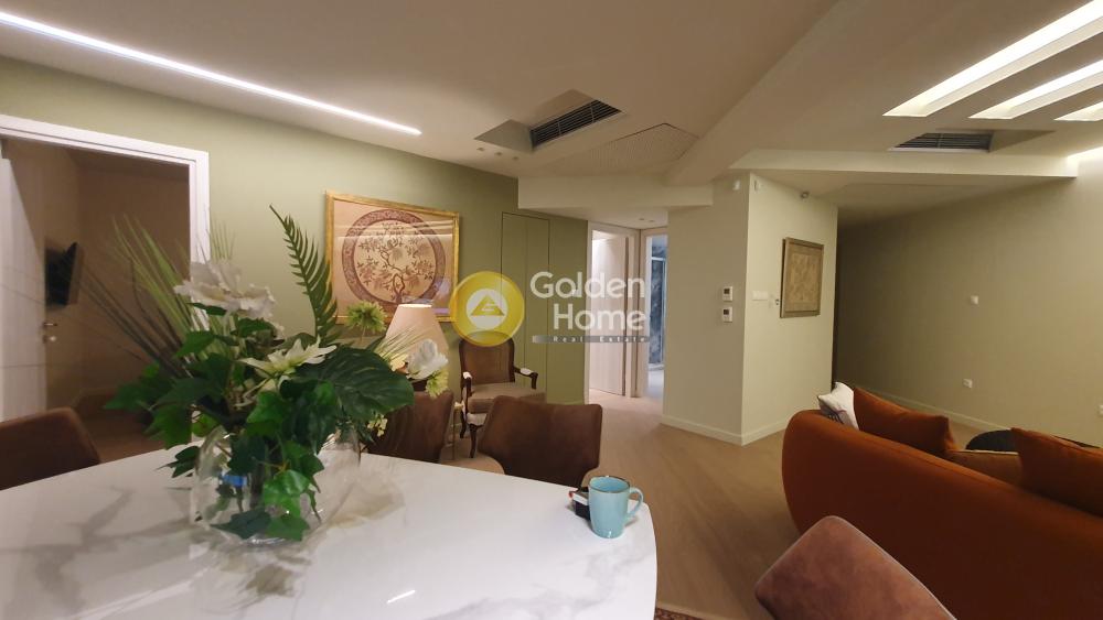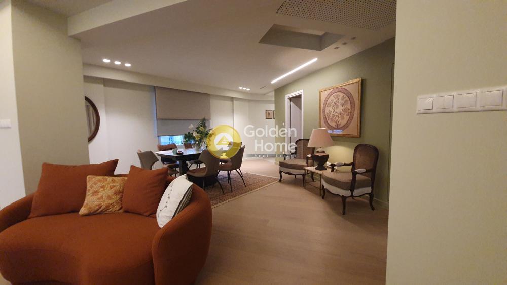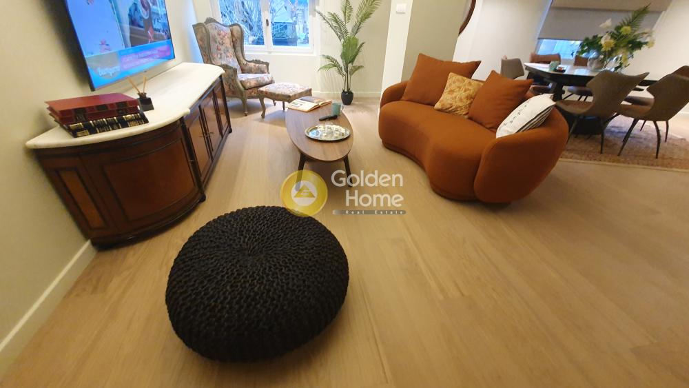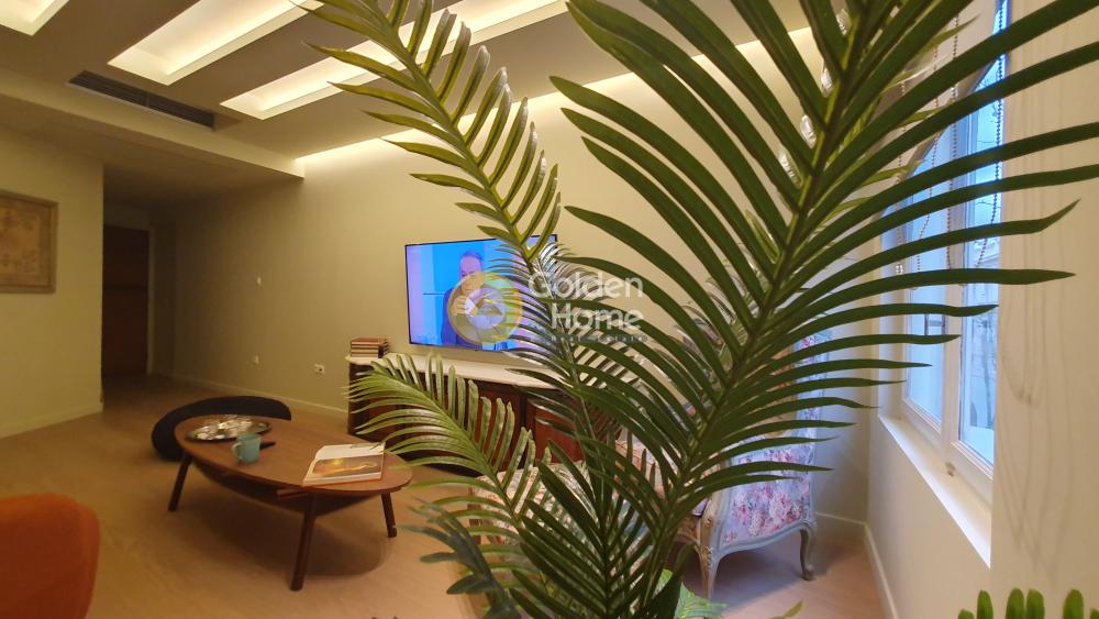 100sqm raised ground floor apartment, fully renovated and furnished with excellent taste, very bright, has 2 bedrooms, one master, large bathroom with shower, oak and tiled floors, kitchen with window has built-in Miele appliances, refrigerator, dishwasher, coffee maker, wooden frames with double glazing, autonomous heating with heat pump for cooling/heating, rapid water heater in the kitchen and central water heater, security door, alarm, and card system for turning on and off the electricity. 3.50sqm basement storage room. There are two double beds, 3-seater sofa with coffee table, bergère, armchairs, TV, buffet, washing machine and dryer, dining room with chairs and decoration with paintings and mirrors. It is located in an excellent location with easy access to a park, the market, transportation & a new metro station.
