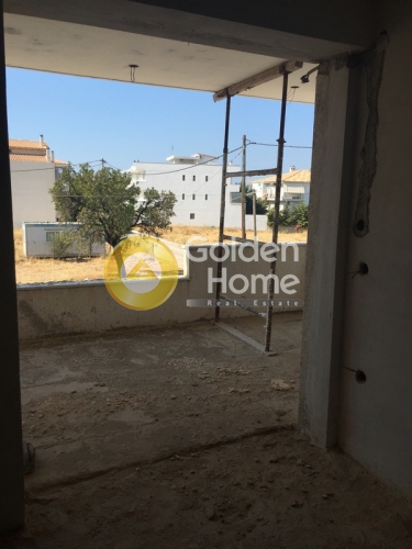 For sale semi-detached maisonette of 240 sq.m. in Kalyvia, part of a complex of five residences, located in a developing area close to the local market, schools, main roads and Attiki Odos. The maisonette is unfinished and consists of a living room with fireplace and open-plan kitchen, three bedrooms (one master with private wc), additional wc, playroom and elevator. It features large balconies in every room with open views, as well as an underground garage with parking space for two cars. There is the option for the project to be completed and delivered finished, upon agreement.