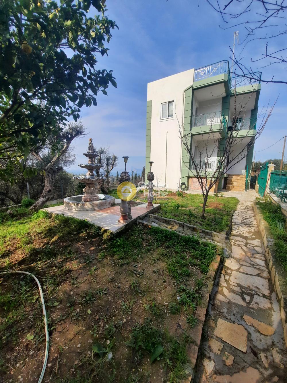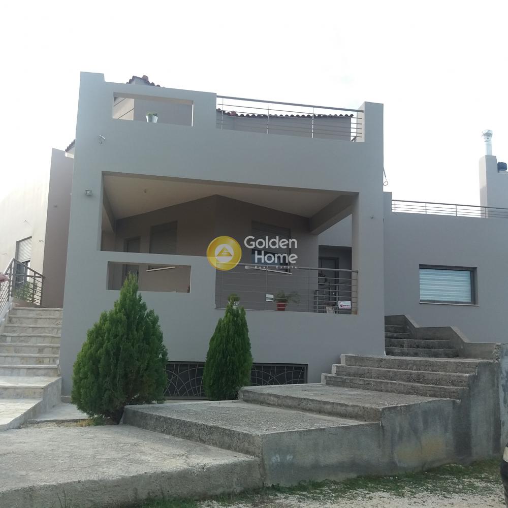 Three-level detached house with a total area of 180 sq.m. built in 2005 in Thea Patras with the possibility of an independent apartment in the semi-basement with a total of 4 bedrooms, 2 kitchens, bathroom, 2 WC, 2 living rooms, on a plot of 412 sq.m. with a remaining building area of 120 sq.m. with outdoor parking spaces, solar panels, fireplace, aluminum screens with electric shutters, storage rooms, with an unlimited view of the Patraikos Gulf, close to public transport to Patras.