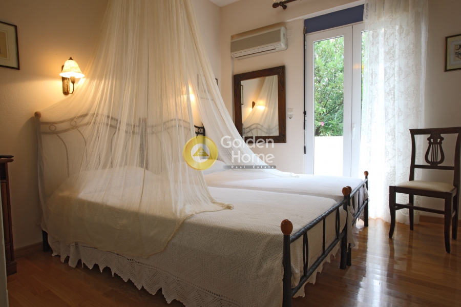 VILLA NEFELI, LUXURY CONSTRUCTION FROM MARBLE AND WOOD, 4 BEDROOMS, 5 BATHROOMS, JACUZZI, SOLAR, FIREPLACE, PRE-INSTALLATION OF HEATING BOILER, SWIMMING POOL 33 SQ.M., BBQ AND WOODEN PERGOLA, NETS, A/C, GYM HALL IN THE BASEMENT WITH PING-PONG TABLE, IN 236 SQ.M. PLOT. BASEMENT: 80SQ.M. AND 70SQ.M. SEMI-DETACHED, GYM, 1 BEDROOM AND LARGE JACUZZI BATHROOM,LARGE STORAGE ROOM, BOILER AREA AND MAINTENANCE OF THE SWIMMING POOL. GROUND FLOOR: LIVING ROOM WITH A KITCHEN, FIREPLACE, 1 BEDROOM AND 2 BATHROOMS. 1ST FLOOR: 2BEDROOMS AND 2 BATHROOMS, INDEPENDENT ENTRANCE. GARDEN: SWIMMING POOL (WITH LICENSE). TERRACE: BBQ. THERE IS AN OPERATING LICENSE FROM THE GREEK TOURISM ORGANISATION .