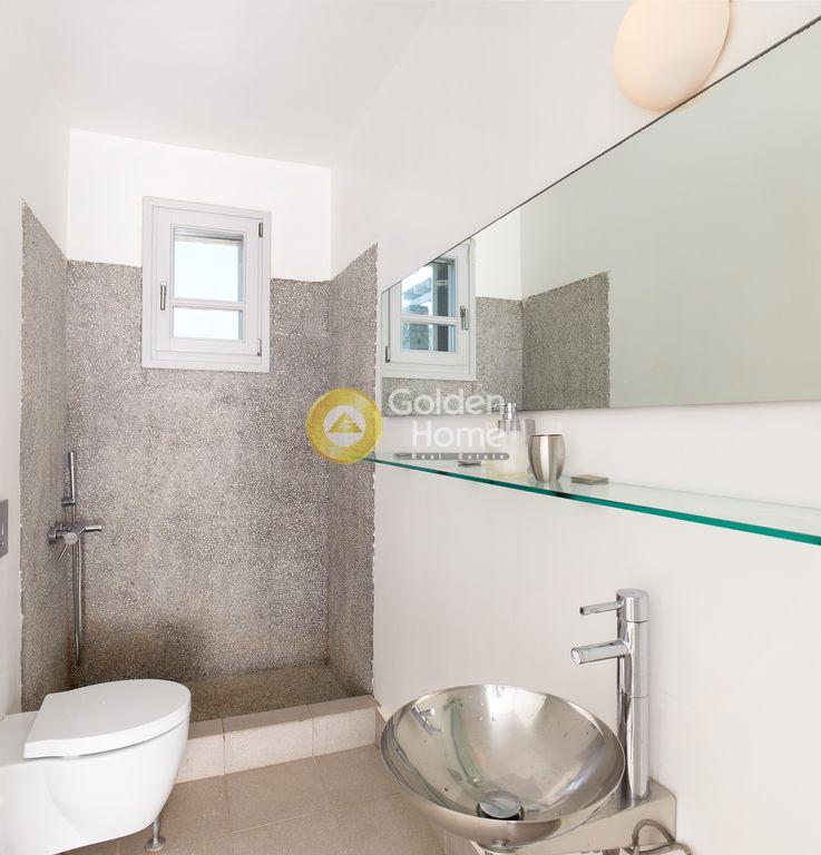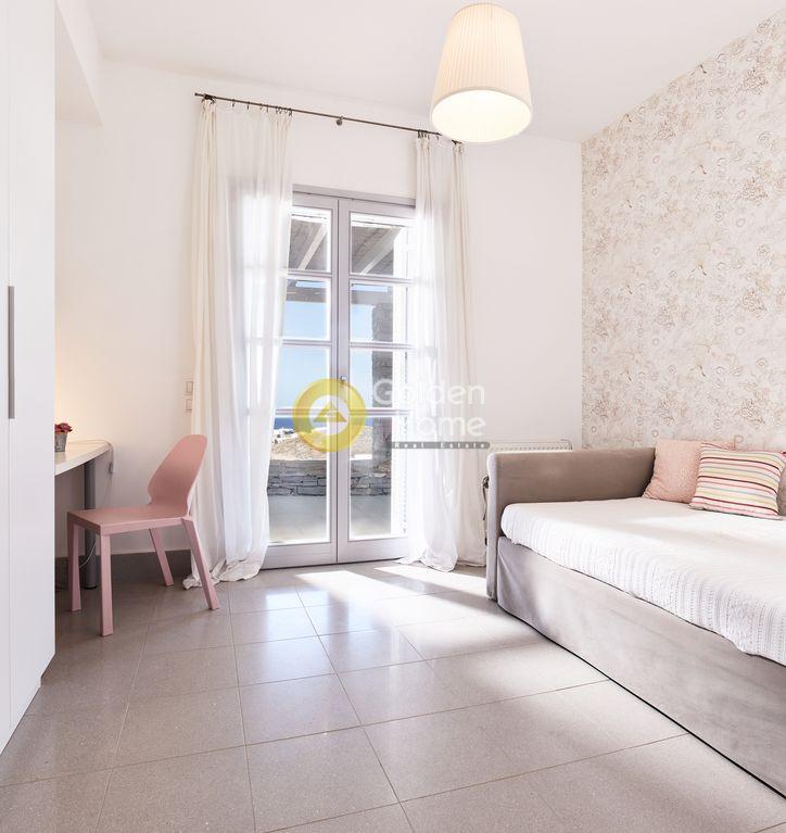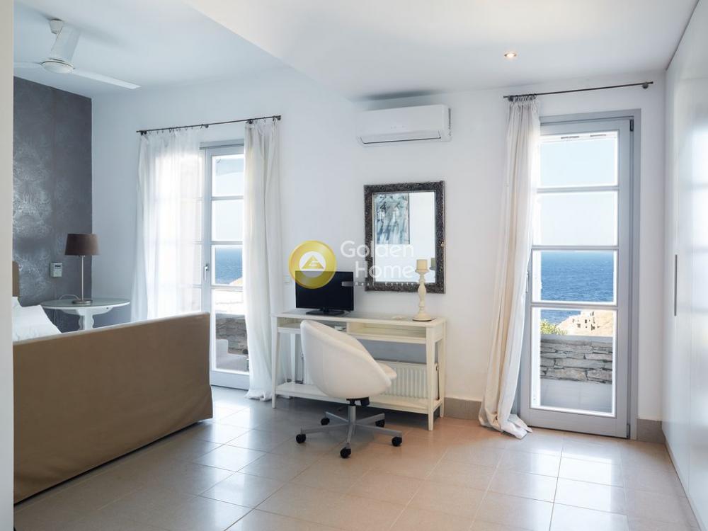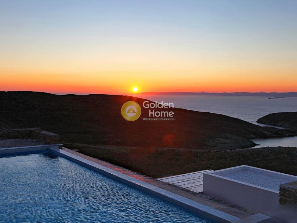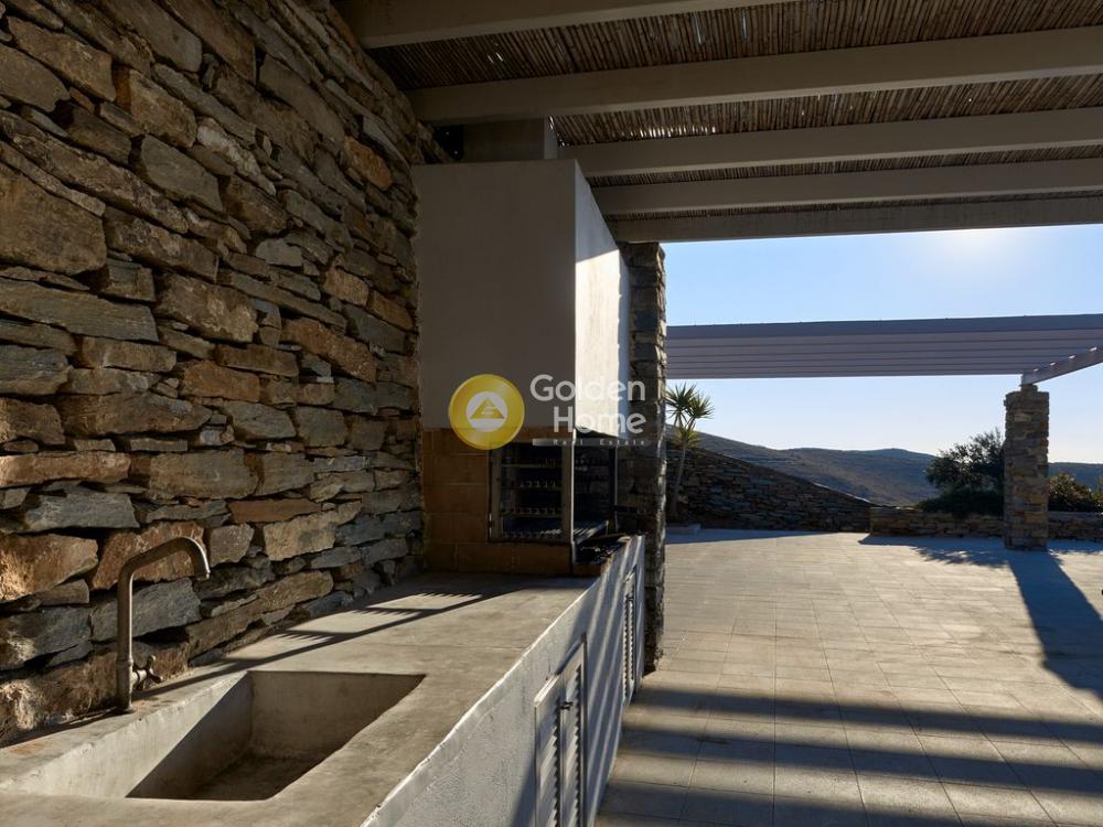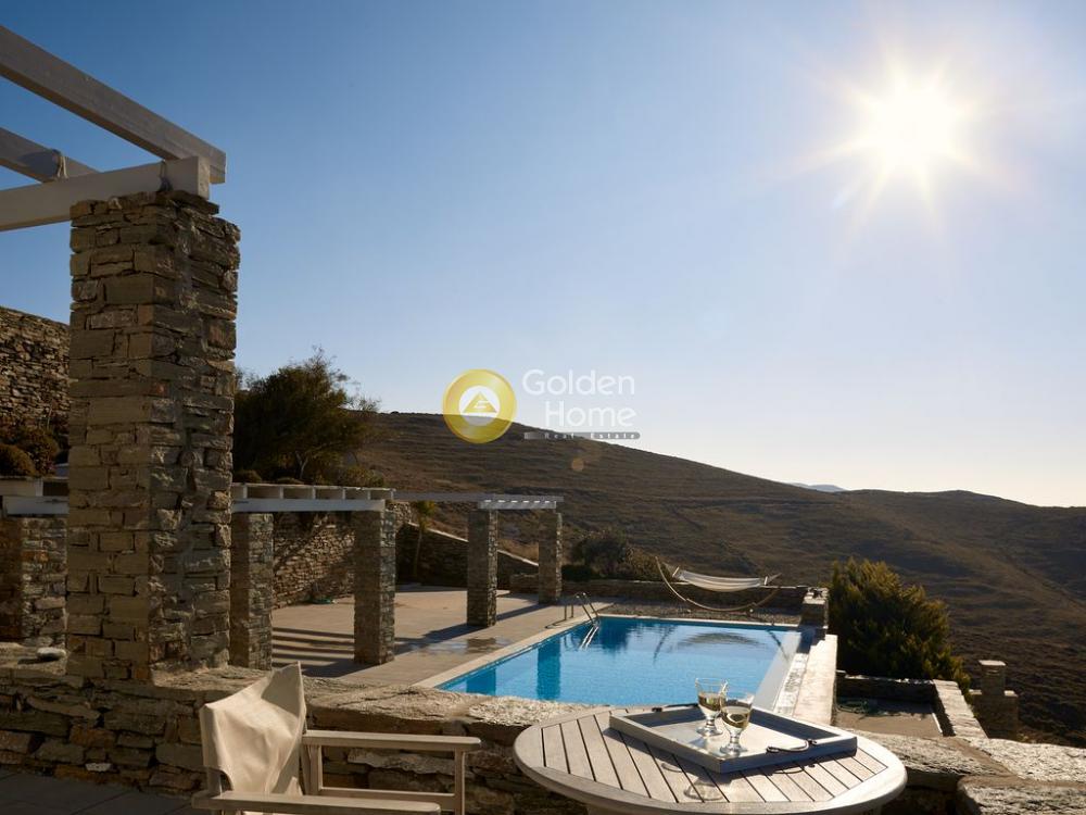 ΚEA OTZIAS for sale amazing villa 240 sqm The main villa covers a total area of 200 s.m. in two levels and is suitable for ten guests. The upper level encompasses a fully equipped open plan kitchen with a large wooden dining table, a spacious living area with comfortable sofas and a fireplace, and a bathroom. The lower level features four bedrooms, three bathrooms and a sitting area with TV and video games that kids will love, and a sofa bed that sleeps two. A fully furnished studio with an independent entrance, situated a few exterior steps under the main unit offers complete privacy. At a bit over 25 square meters and able to accommodate three guests, it consists of a double bed, a sofa bed, a kitchenette and a bathroom. The exterior of the house is just as impressive, dominated by the beautiful infinity pool which looks right out to the Aegean Sea. Close to the pool, stands a big shaded pergola with a dining table and nearby built in BBQ, complemented with water sink. Plenty of sun loungers and various shaded chill-out areas make the outside the ideal place to rest and relax during the day or night. The villa is located on the northwest coast of Kea, only two klms away from the sandy kid-friendly beach of Otzias, and three and a half klms away from the main touristic attraction of the island, the picturesque village of Vourkari. Being on the top of a hill and thanks to its natural downhill slopes, it enjoys breathtaking panoramic sea views and soothing sunsets from all around.