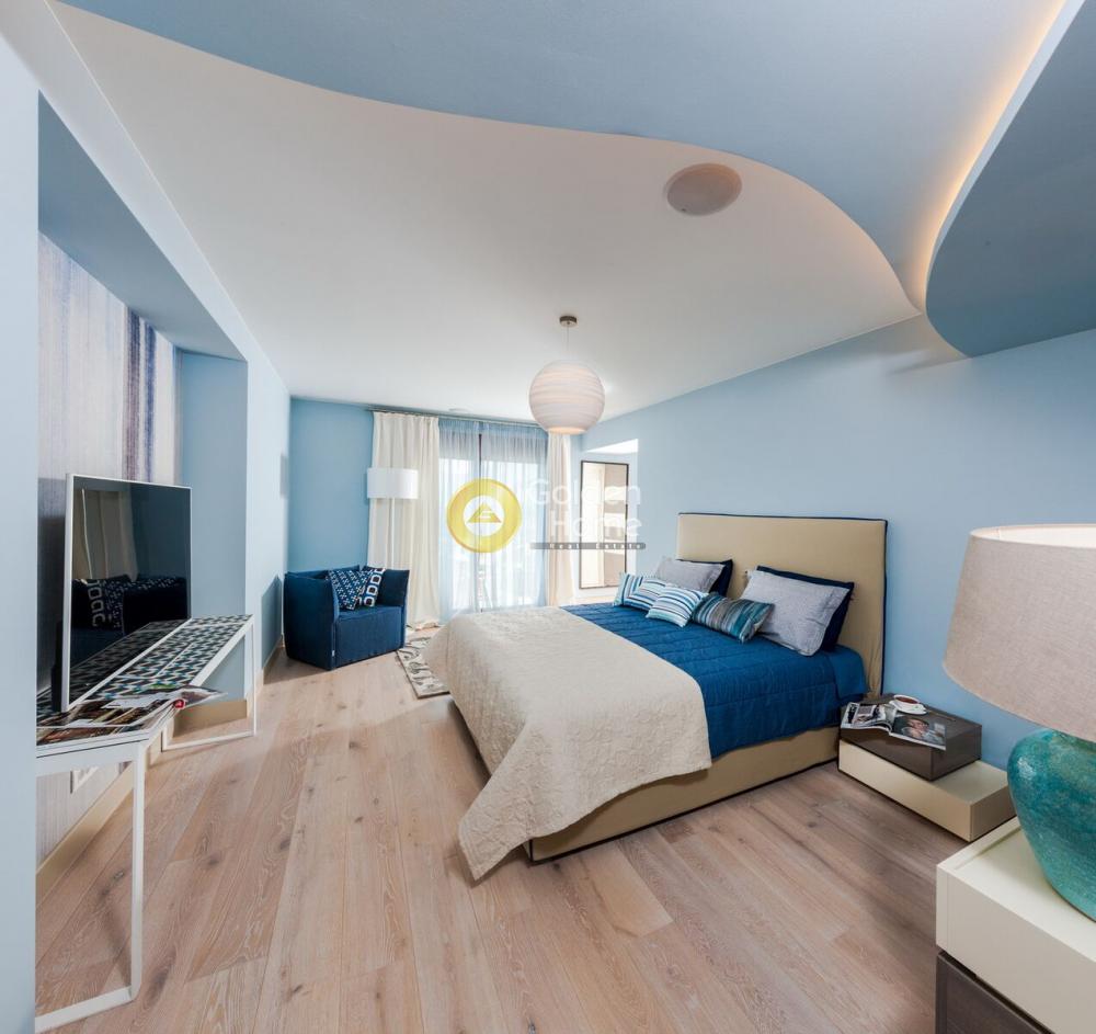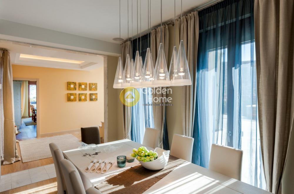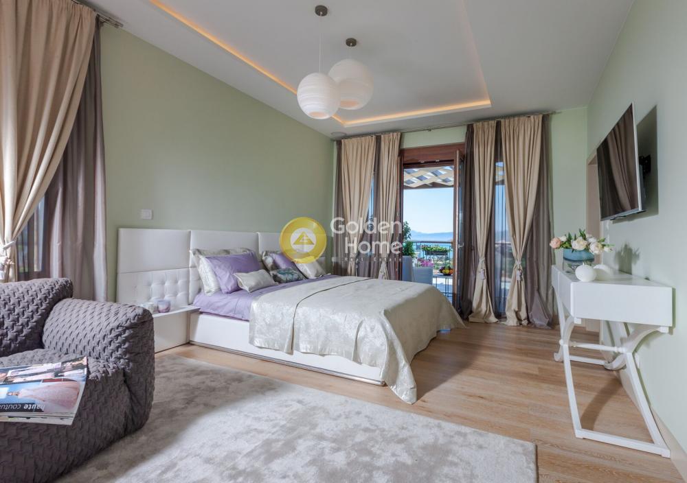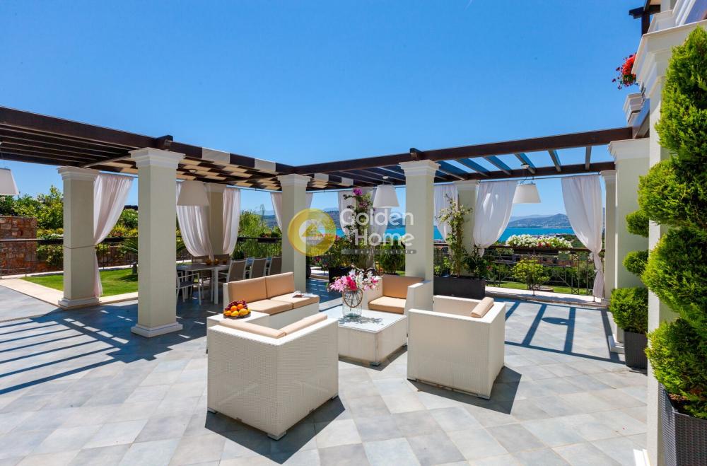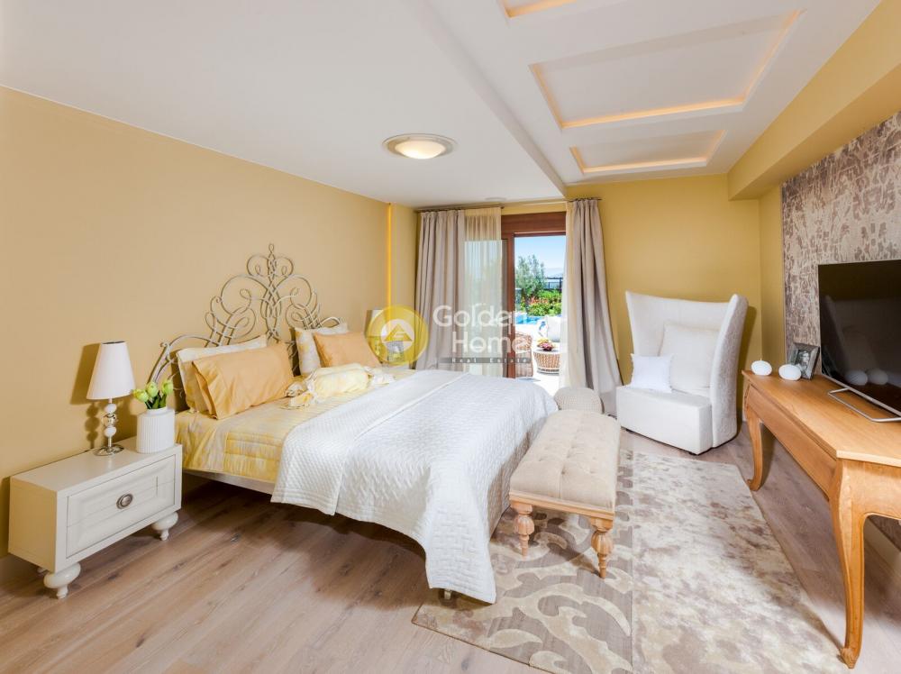 This magnificent spacious villa benefits from wonderful sea and mountains view . The mansion comprises a living room with dining area , leading to a large terrace facing the sea , a fuly equipped kitchen , 5 bedrooms , each with an en suite bathroom and an access to the pool area or terrace . Relaxing spacious outdoor area is ideal for sunbathing by the large swimming poolwith its fresh water , from wich a spectacular panoramic view opens in front of spectator . A footpath with a direct access to the private sandy beach is at your disposal . Plot 4.026sqm. villa 632sqm. infinity swimming pool 18*4,5m.