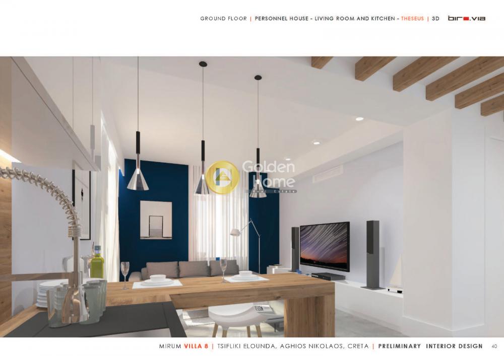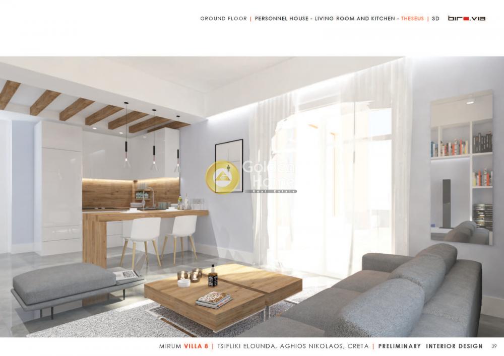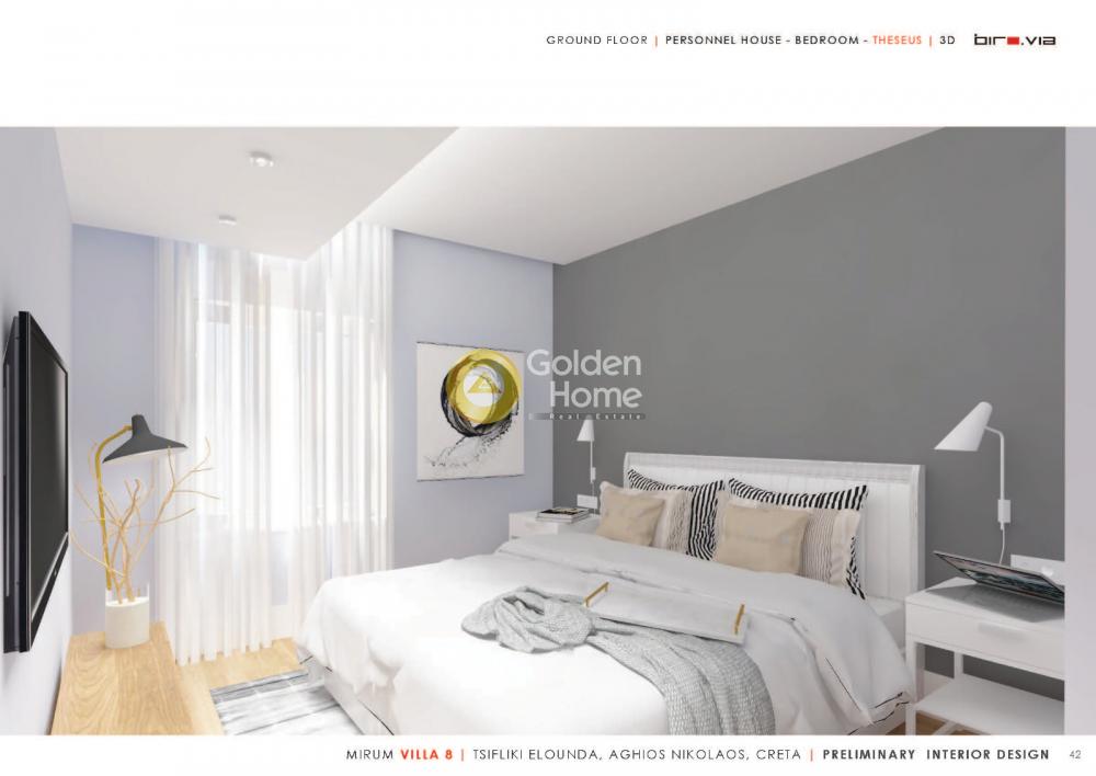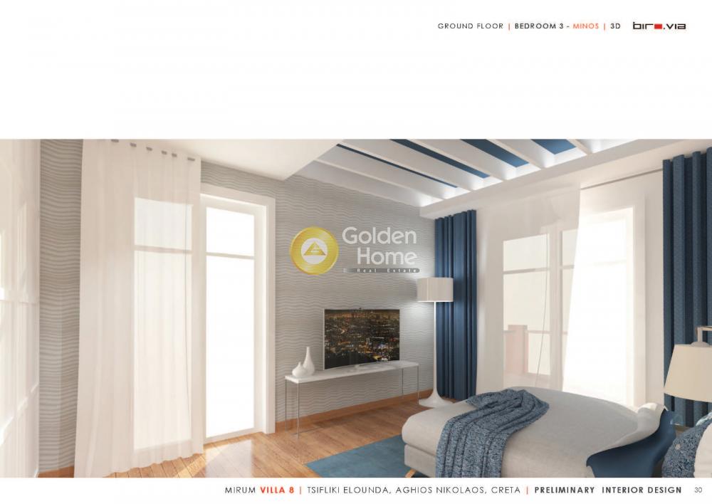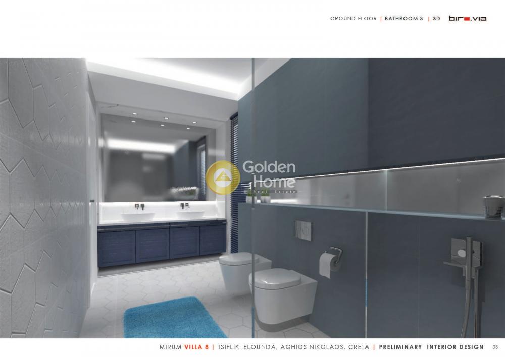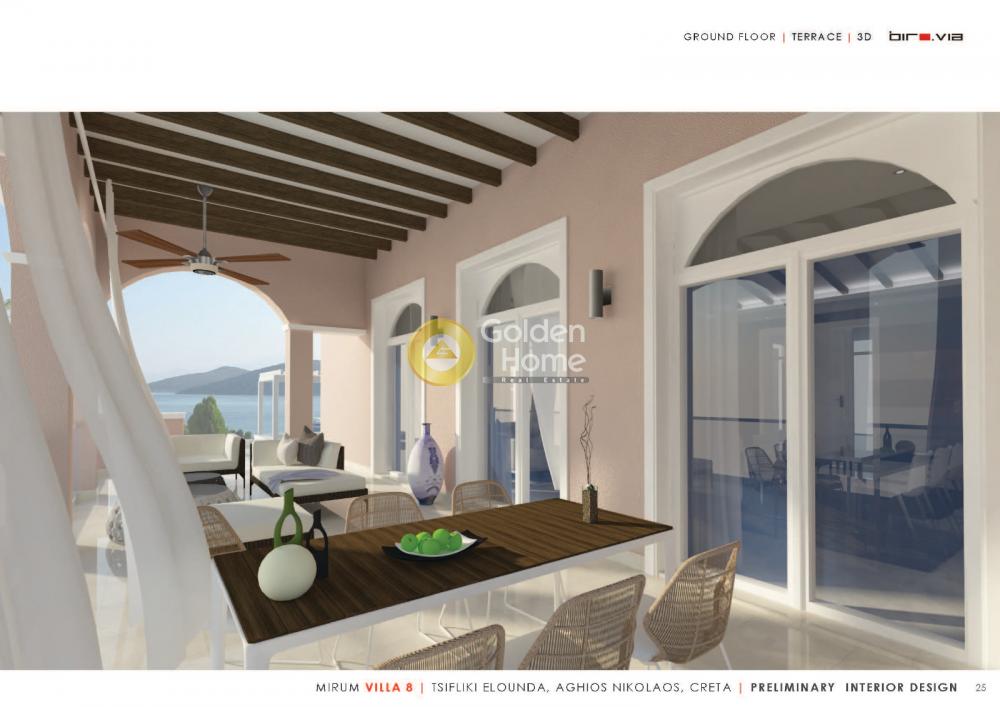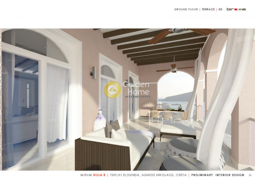 Waterfront villa with a fairy-tale like view . Property , which is deal for a year-around residing , comprises two large living areas , four bedrooms , each with its private bathroom . Lovely outdoor area includes terraces , an infinity pool and a landscaped garden facing the sea . A rich choise of views from villa on the sea and its beautiful coastline invites to contempation . The house also has a view on Spinaloga is land . A two minutes walk will take you to a fine private sandy beach . Infinity swimming pool 13,5*4m.