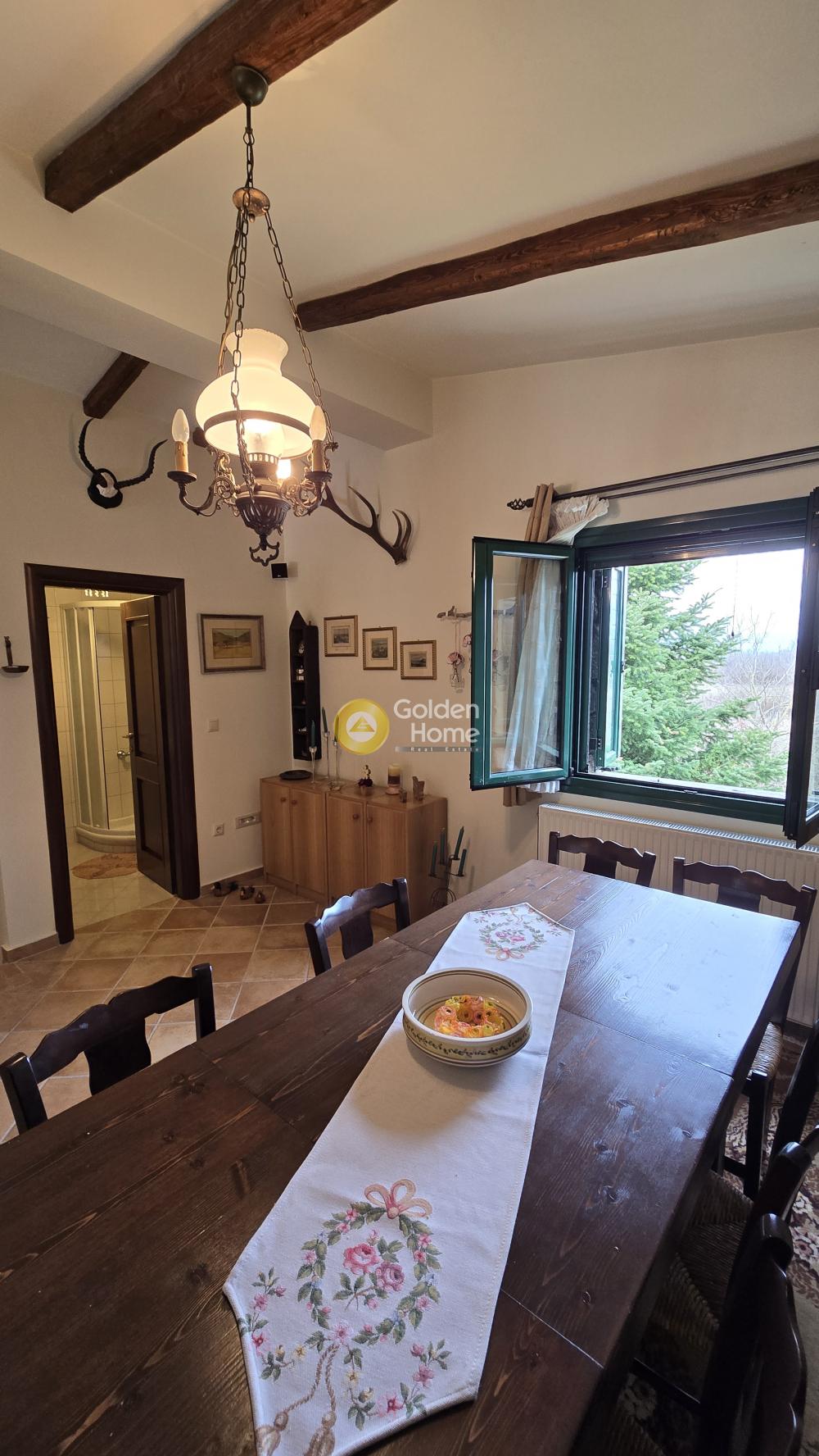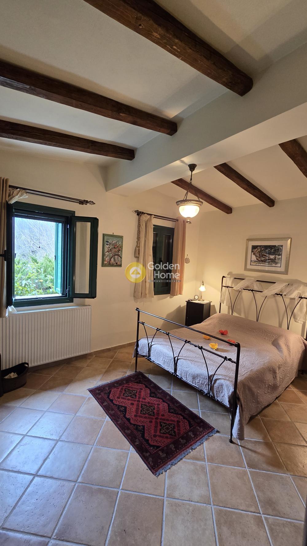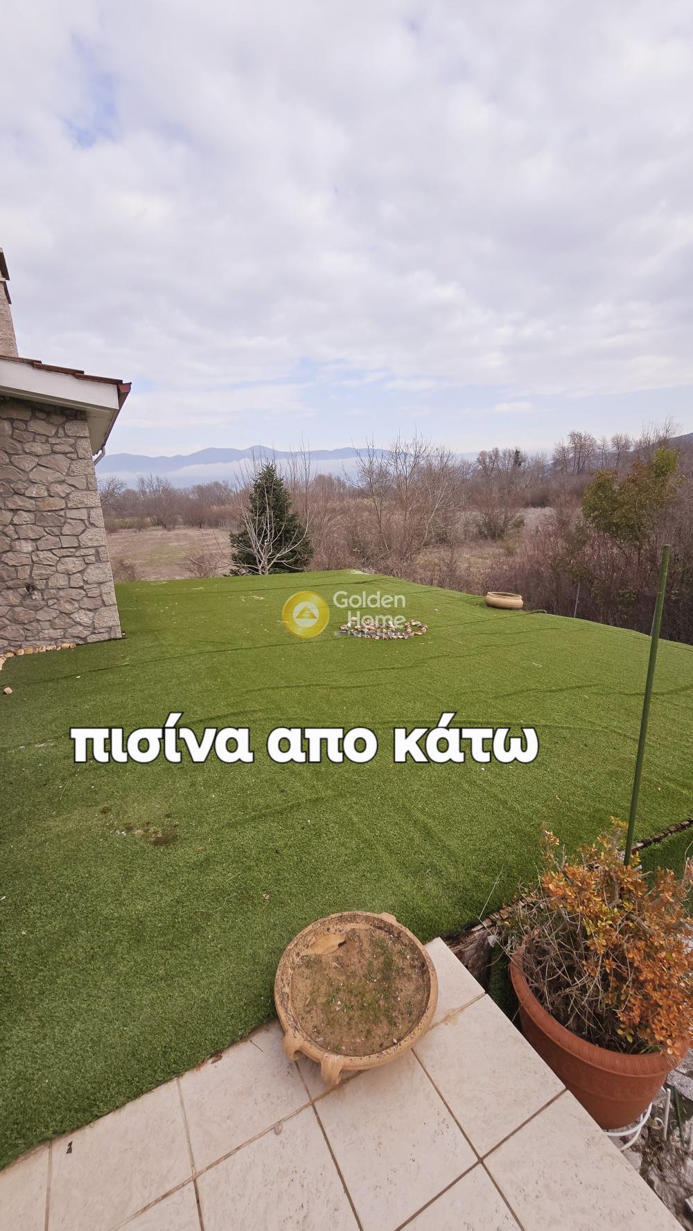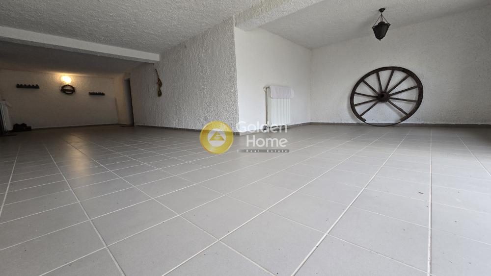 PARNASSOS POLYDROSOS FOKIDA The house is built on a fenced plot of 7211.85 sq m. It consists of a ground floor of 160 sq m. and a basement of 240 sq m. (which is located 50 cm above the natural ground). The ground floor includes a living room with dining room, 2 bedrooms with private bathrooms, a kitchen, and 1 guest toilet. The basement includes 2 bedrooms, 1 bathroom with the possibility of building a second bathroom, a closed garage for 3 cars and storage rooms. The house has been built with a reinforced concrete frame and the walls include brick-insulation-brick and stone construction to minimize temperature losses. The roof is made of concrete and includes double insulation and special-specification tiles with a 30-year warranty. The surrounding area of the house is planted with fruit trees and includes a swimming pool with a jacuzzi, heated by a solar shower. The property is irrigated by a legal borehole which pumps water from a depth of 30 meters with the possibility of pumping from a depth greater than 80 meters. Automatic irrigation has been installed throughout the property which, according to the programming, automatically activates the borehole. All irrigation facilities are underground. The view from the house to the mountain is unlimited and provides the opportunity to view the entire northern side of the mountain which is the greenest, consisting mainly of fir and pine trees. The house is heated by central heating that runs on oil replaced by installed energy-efficient wood stoves of German manufacture. There is the possibility of building another house on this property of the same square meters.