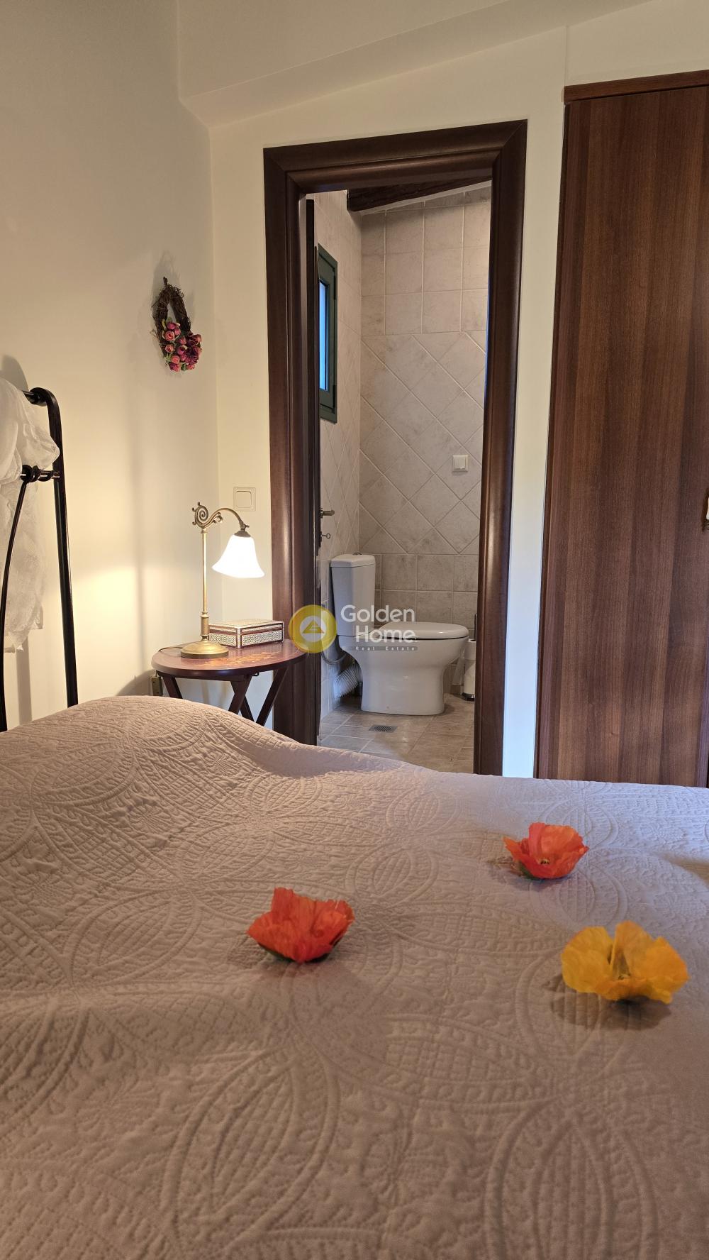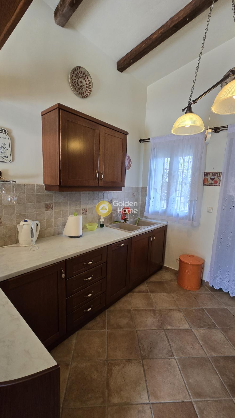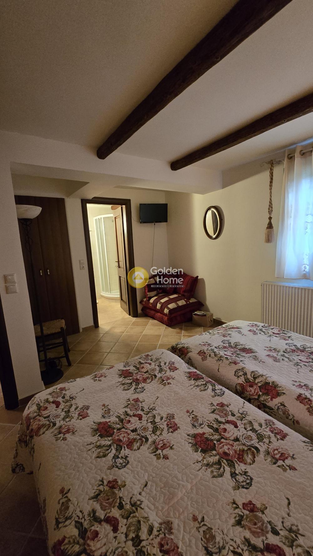 PARNASSOS POLYDROSOS FOKIDA The house is built on a fenced plot of 7211.85 sq m. It consists of a ground floor of 160 sq m. and a basement of 240 sq m. (which is located 50 cm above the natural ground). The ground floor includes a living room with dining room, 2 bedrooms with private bathrooms, a kitchen, and 1 guest toilet. The basement includes 2 bedrooms, 1 bathroom with the possibility of building a second bathroom, a closed garage for 3 cars and storage rooms. The house has been built with a reinforced concrete frame and the walls include brick-insulation-brick and stone construction to minimize temperature losses. The roof is made of concrete and includes double insulation and special-specification tiles with a 30-year warranty. The surrounding area of the house is planted with fruit trees and includes a swimming pool with a jacuzzi, heated by a solar shower. The property is irrigated by a legal borehole which pumps water from a depth of 30 meters with the possibility of pumping from a depth greater than 80 meters. Automatic irrigation has been installed throughout the property which, according to the programming, automatically activates the borehole. All irrigation facilities are underground. The view from the house to the mountain is unlimited and provides the opportunity to view the entire northern side of the mountain which is the greenest, consisting mainly of fir and pine trees. The house is heated by central heating that runs on oil replaced by installed energy-efficient wood stoves of German manufacture. There is the possibility of building another house on this property of the same square meters.