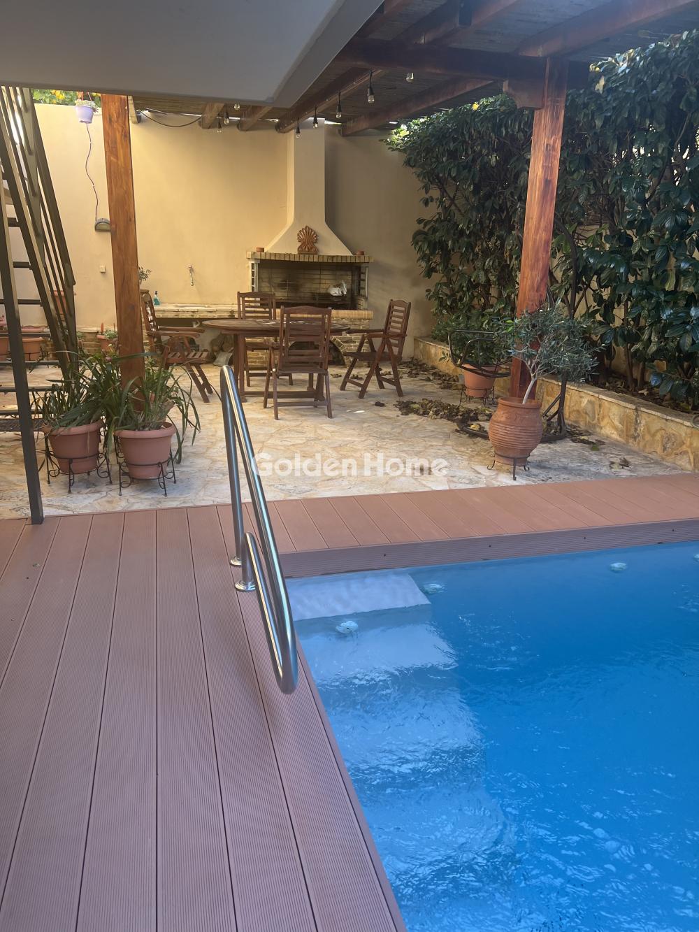 Luxury 240sq.m Detached House. A stunning 240sq.m detached house on a 406 sq.m plot, is available for sale in Keratea. Built in 2006 and featuring an East South orientation, this bright and airy property is in excellent condition. Interior consists of 3 bedrooms,large living room with fireplace, dining area, modern kitchen, 2 bathrooms, and 2 WCs. Includes an internal staircace and a large storage room. Exterior there is a private garden with swimming pool , perimeter balconies, and spacious verandas with exclusive roof access. Offers unobstructed views of the mountains, park, and square. Energy & Technology: Equipped with a 4kW Photovoltaic (PV) system and 10kW battery storage (installed 2024). Features Indepent oil heating, solar water heater, alarm system, boiler, pavilion, BBQ, security door, and three-phase electricity. Key Features: 3 parking spaces, aluminum frames, alarm system,video entry, awnings and biological sewage treatment. Ideally located in a quiet area facing a park, also suitable as a holiday home.
