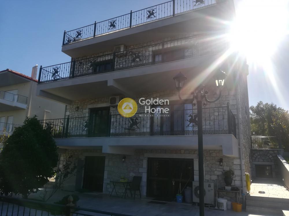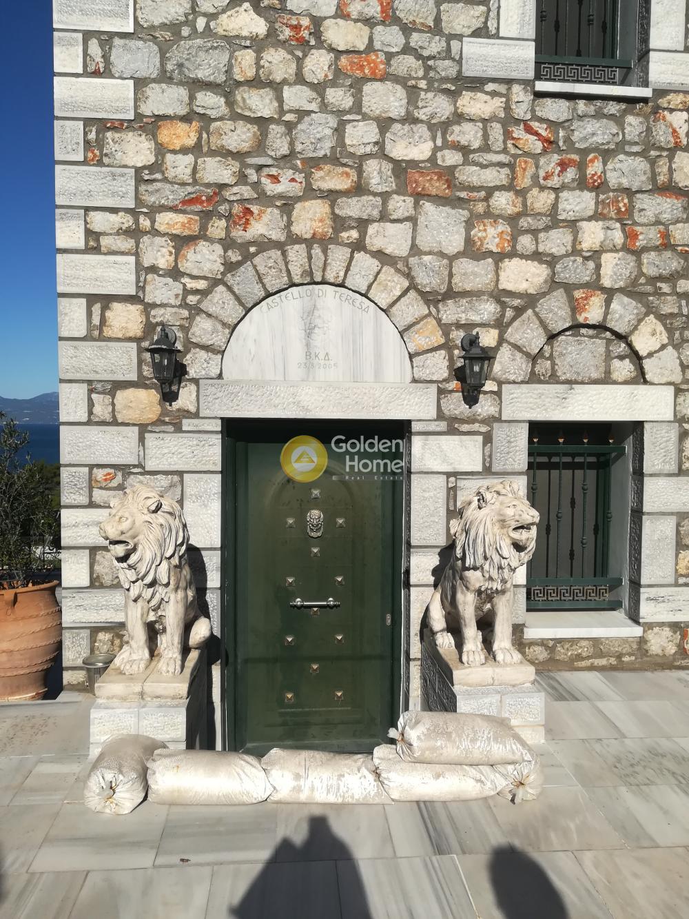 Stone House 400sqm in OSMAES - Theologos - Fthiotida - Malesina on a plot of 1.050sqm. Copy of 14th century Mani Tower with Mani marble stone. Facade, airy. 3 independent apartments 120 - 130sqm each, which communicate with each other via stairway. Ground floor (basement), ground floor - 1st floor and roof terrace. The terrace is very large with great views.