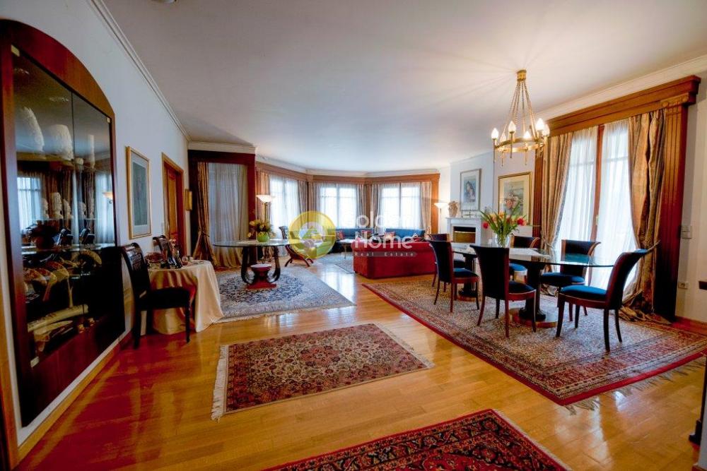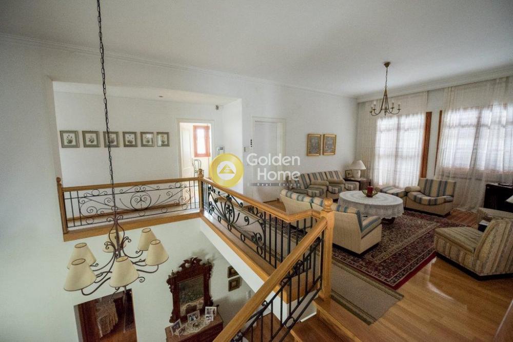 Luxury villa of 610 sq.m. on a 1,500 sq.m plot of land. A unique neoclassic building with unobstructed mountain view and unparallel architecture. The villa is structured on three levels with a total of 7 bedrooms (1 master), 4 bathrooms, 2 wc. Ample ground floor of 200 sq.m. with spacious reception area, bright living room with fireplace, dining room, office space and guest wc. Separate kitchen with living room, fireplace and auxiliary storage. Additional guest house with own living room, 1 bedroom and 1 bathroom. Wooden oak floors all over. A fabulous staircase leads to the 167 sq.m. first floor where a large open space serves as a living room. There are also 2 bedrooms with a large shared bathroom, a master bedroom with Jacuzzi and dressing room and an extra bedroom with wc and laundry room. The wooden staircase leads to a loft. The semi basement of 244 sq.m. consists of a large reception area, playroom. It has its own independent entrance that comes out onto a terrace and a garden. There is also a living room with fireplace, open plan kitchen, two bedrooms with shared bathroom, storage room and 3 indoor parking spaces. Furthermore, the house has private elevator, underfloor central heating, double glazing, alarm, entrance camera, large marble verandas and external stairs with white Dionysus marble. The garden is tastefully landscaped with lawn, plane trees, pine trees, fruit trees.Price: 1.200.000 euros