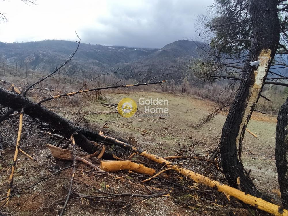An area of many acres with residential and forested areas, which after the fire has actually decreased in size. Perfect and buildable due to its area, adjacent to a public asphalt road with unlimited mountain and sea views, ready for exploitation With a natural spring