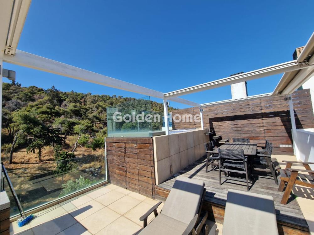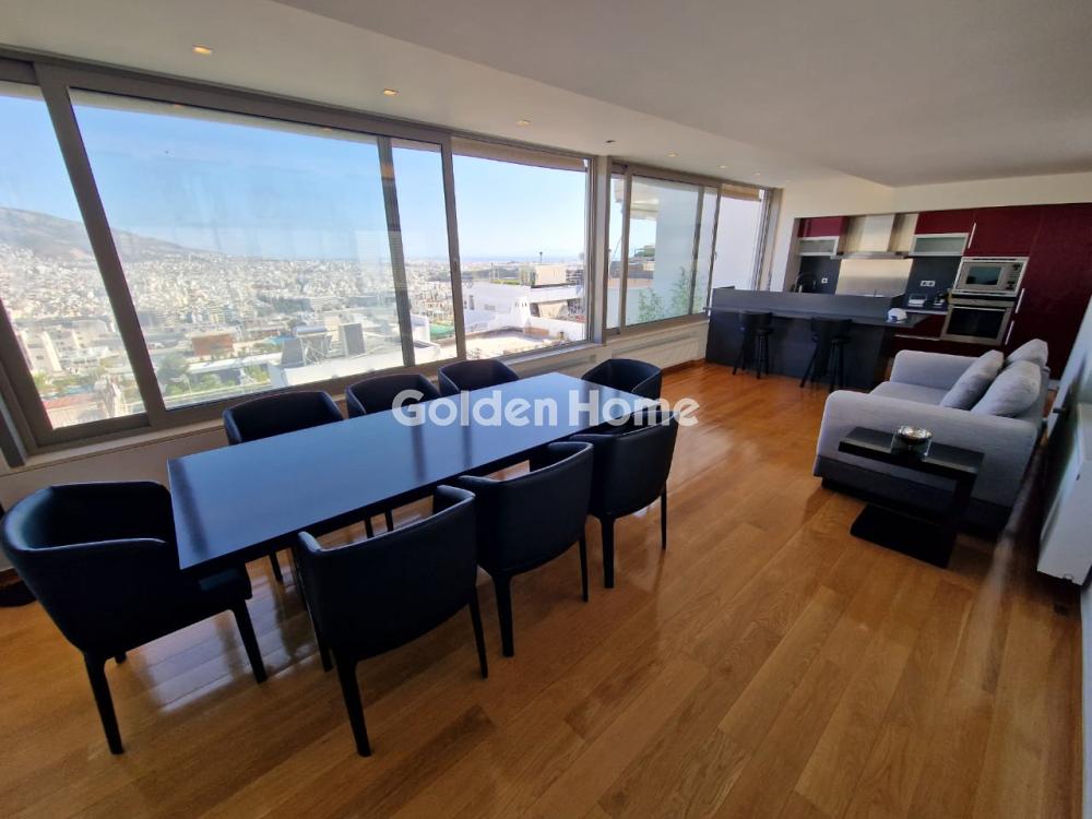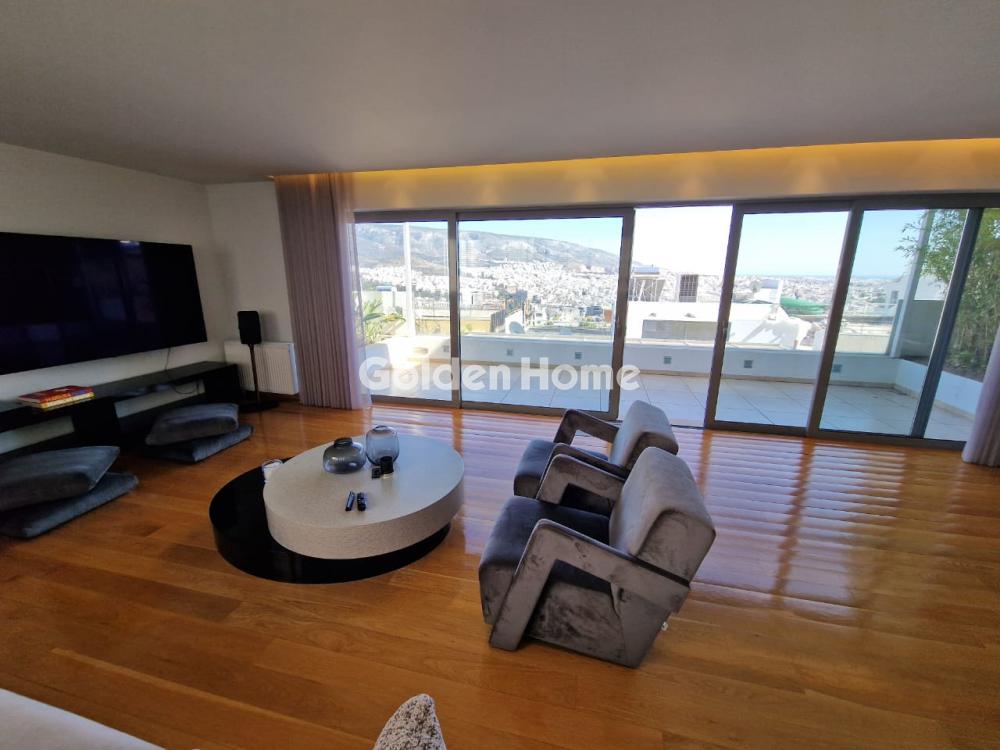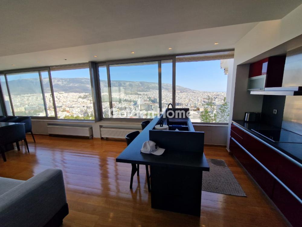 Modern maisonette in minimal style on the 4th and 5th floor with a total area of 200 sq.m. built in 2014 /rennovated 2025 with panoramic views of Lycabettus Hill and sea views of the Saronic Gulf from the roof garden. The roof garden is for private use and has a small pool and barbeque. The maisonette includes 2 bedrooms, one master, independent living room, dining room, bathroom, fireplace, kitchens, autonomous heating, air conditioning, security alarm with security cameras, a parking space. Price: 9800 euros, also offered furnished for 10500 euros.