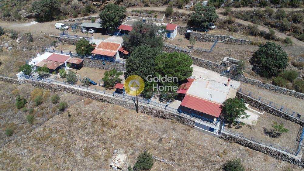 In a 6 acres plot of land for sale a residential complex consisting of 4 houses of total area of 200 sq.m. One house is built in 1980 and the other three are later (1994-2000). They were renovated in 2008. They are 5 km from the country (Ioulida) and the nearest beaches are: Pisses (5 km) and Koundouros (10 km). There are two rainwater collection tanks with an area of 16 sq.m. and 25 sq.m., which serve the needs of the houses. In the three houses there is a fireplace and all of them have a water heater. The two houses have a storage room. In the property there are several trees, such as olive, oak, lemon, fig trees. There is also a communal playground and each house has its own traditional swing, benches, basketball hoops and parking space. There are elements of traditional Griot construction with stone. With stunning views to the tower of Agia Marina and the sea. An ideal destination, just one hour from Lavrio.