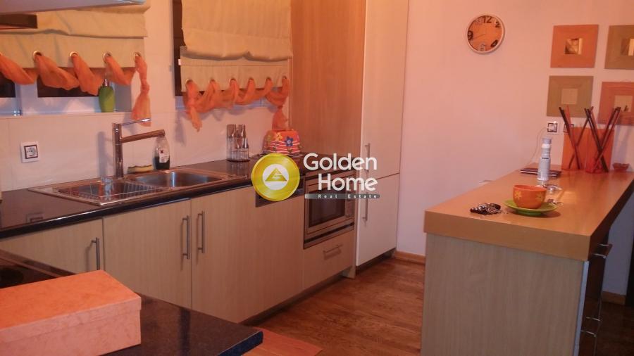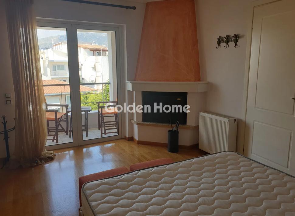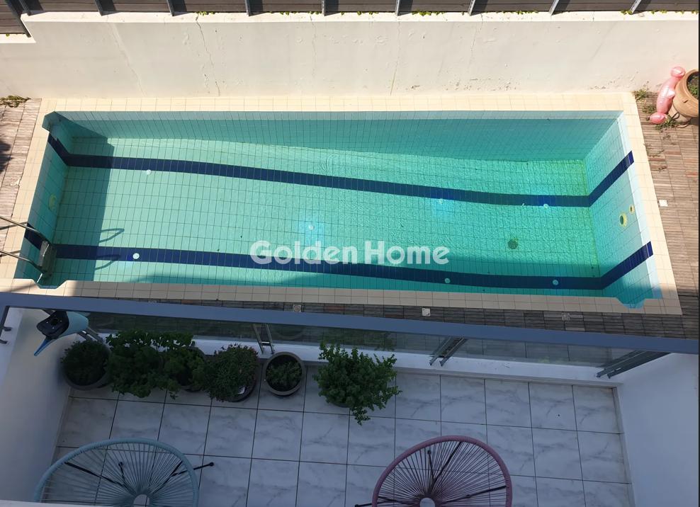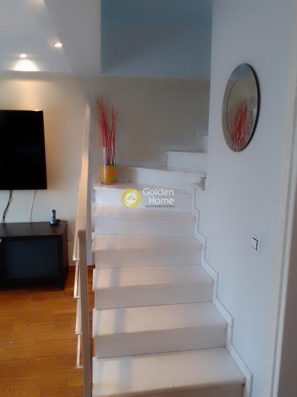 Luxury penthouse floor-through maisonette on the 2nd and 3rd floors, part of a modern, high-quality construction, located in a small building of only 6 apartments, in an exceptionally quiet and green area with upscale residences. The property is dual-aspect, front-facing and particularly bright, with a northern orientation and unlimited mountain views, just 3,000 meters from the sea. The maisonette features a spacious, open-plan and modern living room with dining area, filled with natural light, a fireplace, and direct access to large verandas with beautiful open views. The contemporary kitchen is open to the living area and includes a breakfast bar, window, balcony, and fully built-in electrical appliances. The property is offered fully and luxuriously furnished, including double beds, single beds, sofa, armchair, dining table, chairs, and complete bedroom furniture. It comprises 2 large bedrooms, both with balconies, lovely views, and spacious wardrobes. There are also 2 bright and comfortable bathrooms, both with windows and luxury sanitary ware. Heating is autonomous with an oil burner, while there is pre-installation for natural gas, a boiler, night electricity tariff, and inverter air-conditioning units. Additional features include a security door, video intercom, alarm pre-installation, aluminum window frames, internal staircase, storage space inside the maisonette as well as a large storage room in the basement, and flooring with tiles and parquet.The building offers an elevator, excellent and modern exterior appearance, an attractive entrance, a communal garden, and a shared swimming pool with a beautifully maintained surrounding area. It is conveniently located close to schools, shops, and bus stops, with easy asphalt road access. Pets are allowed. An exceptional choice for those seeking quality, comfort, and luxury in a peaceful setting.