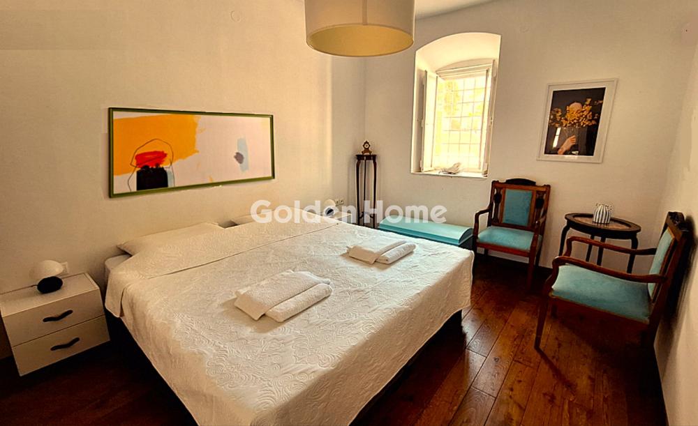 FOR SALE: A traditional autonomous maisonette in Hydra, part of a historic 18th-century four-storey mansion on a 580 sq.m. plot, just a 3-minute walk from the port, located directly on the main Hydra road (Admiral Miaoulis Street) with no steps. The residence is naturally separated from the main building mass and spans two levels with a total surface of approx. 160 sq.m. Ground floor 99 sq.m.: open-plan living room and kitchen, two bedrooms (one partially carved into the rock, offering ideal microclimate), and a spacious bathroom. Traditional stone flooring, exposed beams and excellent sound insulation from the upper floor. First floor: central living room of 60–65 sq.m., two bedrooms facing the mountain and the sea, wooden floors, and a large terrace with beautiful village views. Features: 80-cm stone walls with traditional Hydra pointing, new electrical and plumbing installations, sewage connection, air-conditioning, shared fire-detection system, private courtyard and a small triangular rear yard that can connect to the main terrace.The roof terrace has been reconstructed with a reinforced concrete slab and belongs to the house, but with usage restrictions, as a non-walkable (non-accessible) roof.. The house stays cool in summer and warm in winter. Some antique furniture can be included. The two levels are connected externally, allowing either two independent apartments or a single maisonette if an internal staircase is added.