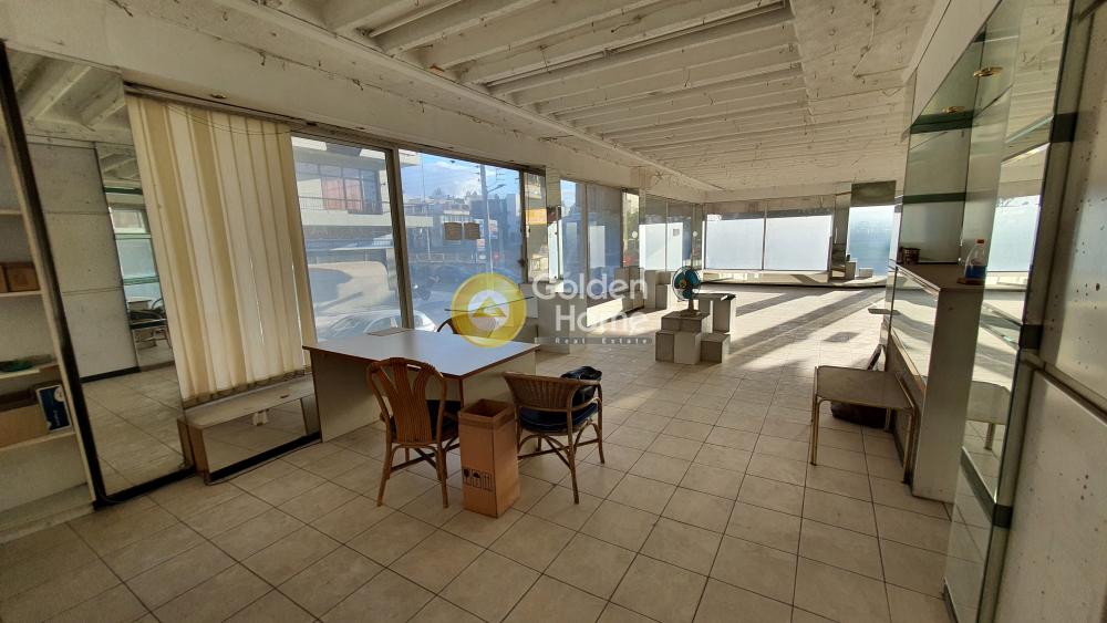 Corner store of high visibility, on the main avenue in Kato Ilioupoli, built in 1973. It consists of an elevated ground floor store of 107sqm. Three-phase power supply, independent supply and panel per level. Hall without columns, with independent entrance (nine steps) in front, large corner windows, 1 WC, height 2.90.