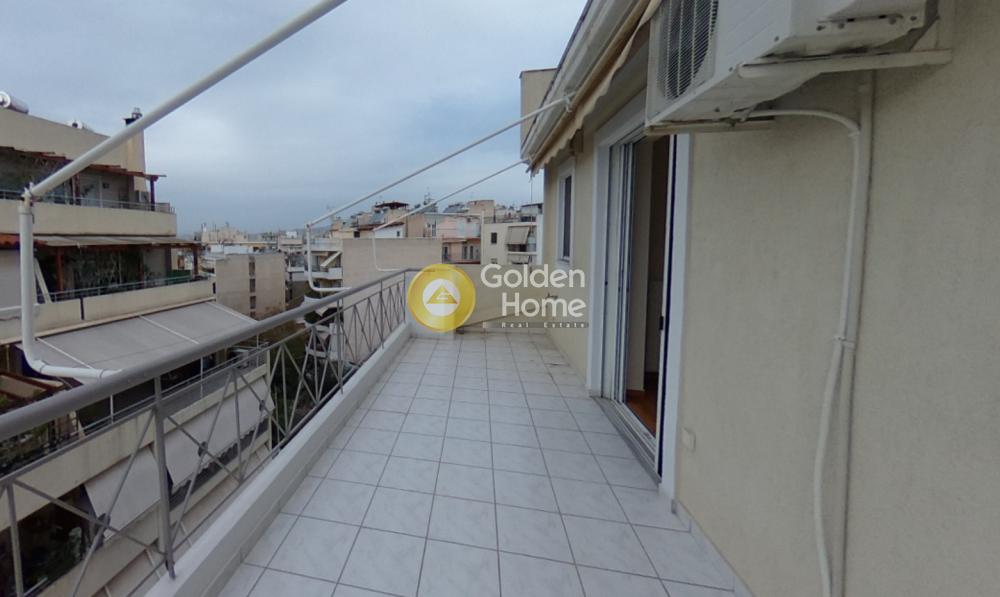 Wonderful, front-facing 91 sq.m. maisonette, 5th-6th floor penthouse, built in 2005, in excellent condition. It consists of 2 bedrooms, living room, kitchen, bathroom, WC and has an internal staircase. It has built-in Bosch electrical appliances, wooden floors, aluminum frames with double glazing and screens, security door and alarm. It offers autonomous oil heating, air conditioning, solar water heater, 15 sq.m. storage room, elevator, large verandas with awnings, open horizon and spacious & privileged pilot parking. It is located on the borders of Nea Smyrni, near Alsos, in a quiet location with direct access to a park, schools, market, metro and tram.