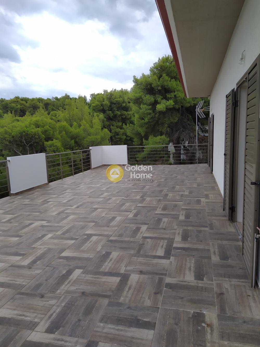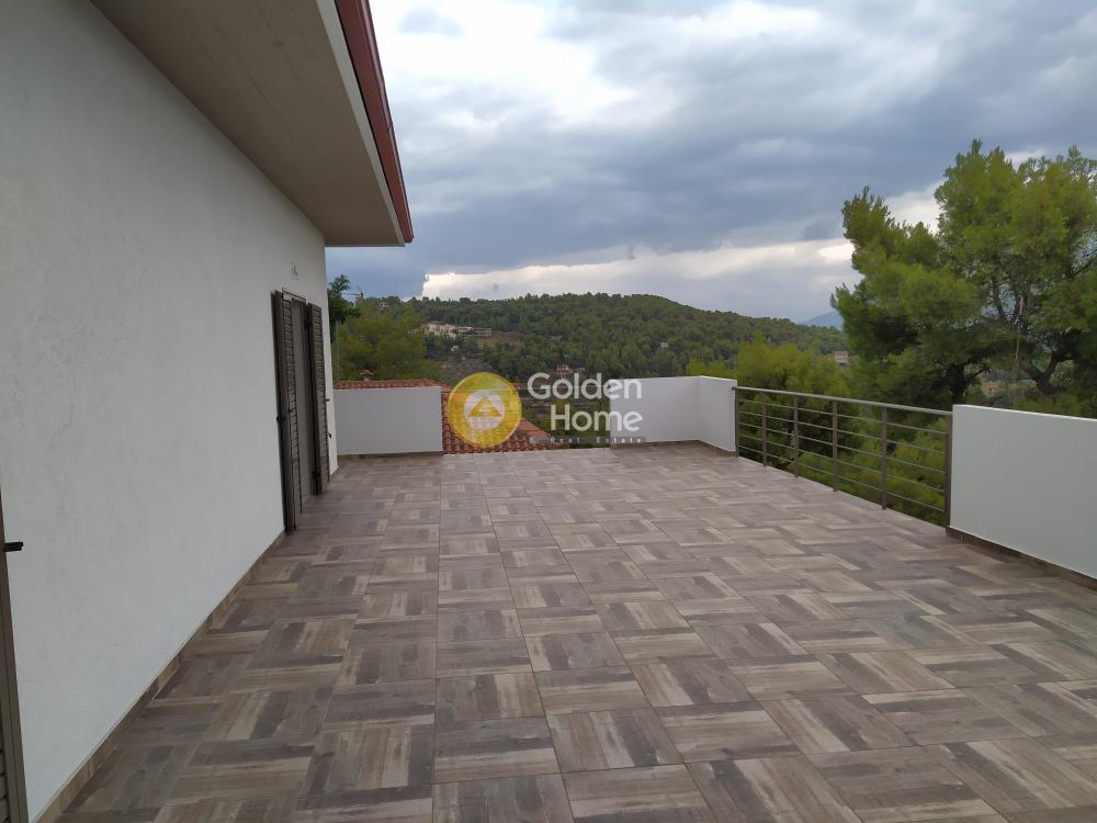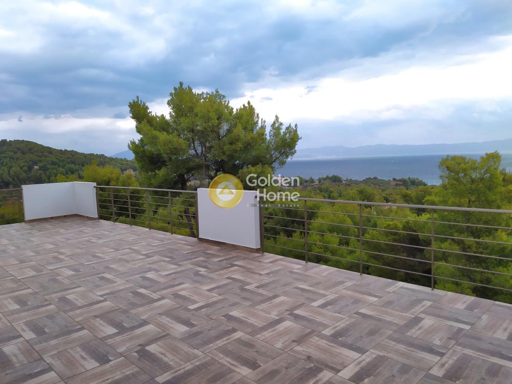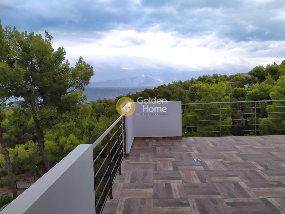 Theologos of Fthiotida, settlement of OSMAES Three-level maisonette of 215 sq.m., with an additional 13 sq.m. at the basement. It has 6 bedrooms and the ground floor is an independent house of 86 sq.m. Excellent construction, with thermal facade, luxury aluminum with thermal break, modern kitchen furniture and many storage spaces. Very quiet area in the green with unrestricted views of the sea from the interior of the house and from the very large terraces.