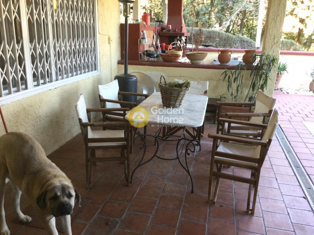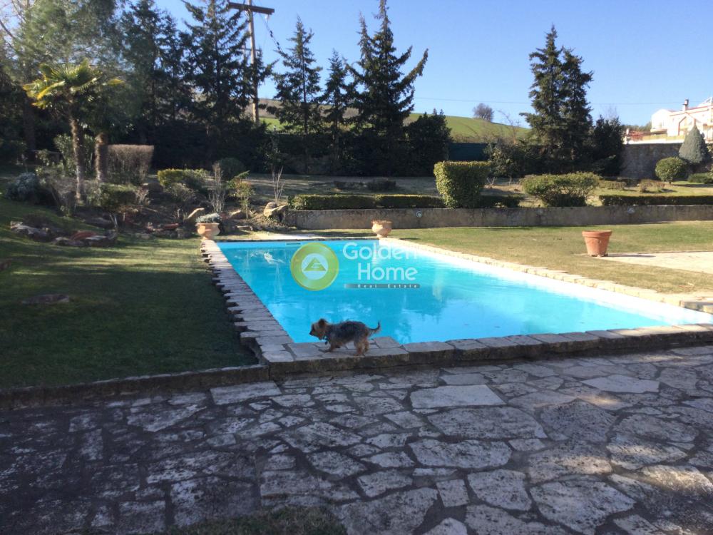 FOR SALE wonderful villa 450 sq.m. on a plot of 6,500 sq.m. in Plagiari of the Municipality of Thermi The location of the plot of this house in the area of ​​Thessaloniki is particularly privileged in a green environment. The house is protected from the eyes of passers-by and gives the occupants peace and quality of life. The surrounding green space that is beautifully landscaped includes swimming pool, shower installation, gazebo, indoor and outdoor, 3 covered parking spaces, fruit trees, ornamental plants, storage and an independent guest house of 50 sq.m. The whole area is fenced. The stunning house consists of 3 levels with the following spaces: The ground floor has a unique aesthetic open space in which is the living room, dining room, and kitchen. In addition there is a gym, bathroom, cellar, special area for laundry and a storage room. On the middle level there is a living room with large fireplace, dining room, a large office space, play room, separate kitchen, 1 bathroom, 1 bedroom. Outside there is a large covered terrace. Upstairs there are 4 bedrooms, 2 bathrooms, a dressing room and a large outdoor terrace. All levels are connected by an internal staircase and have openness and views. In addition there are security and surveillance systems (cameras, alarm systems, etc.). It is a special and separate property, ideal for a large family. In addition, however, it is possible to use the multi-purpose recreation area as a luxury guest house or accommodation for the elderly. -Golden Home Real Estate- Ionos Dragoumi 4, 54623, Thessaloniki Email: thessaloniki@goldenhome.gr Web: https://goldenhome.gr O: +302314405900 M: +306947645562