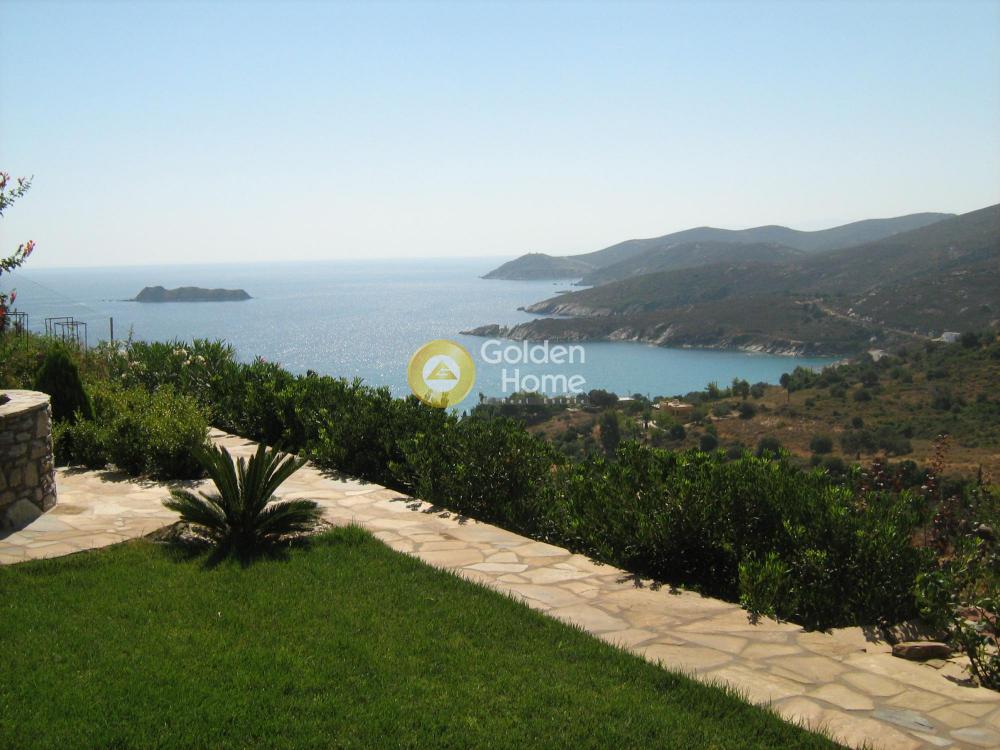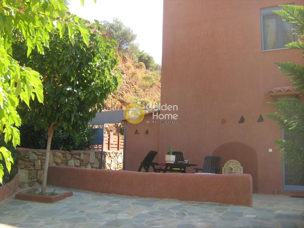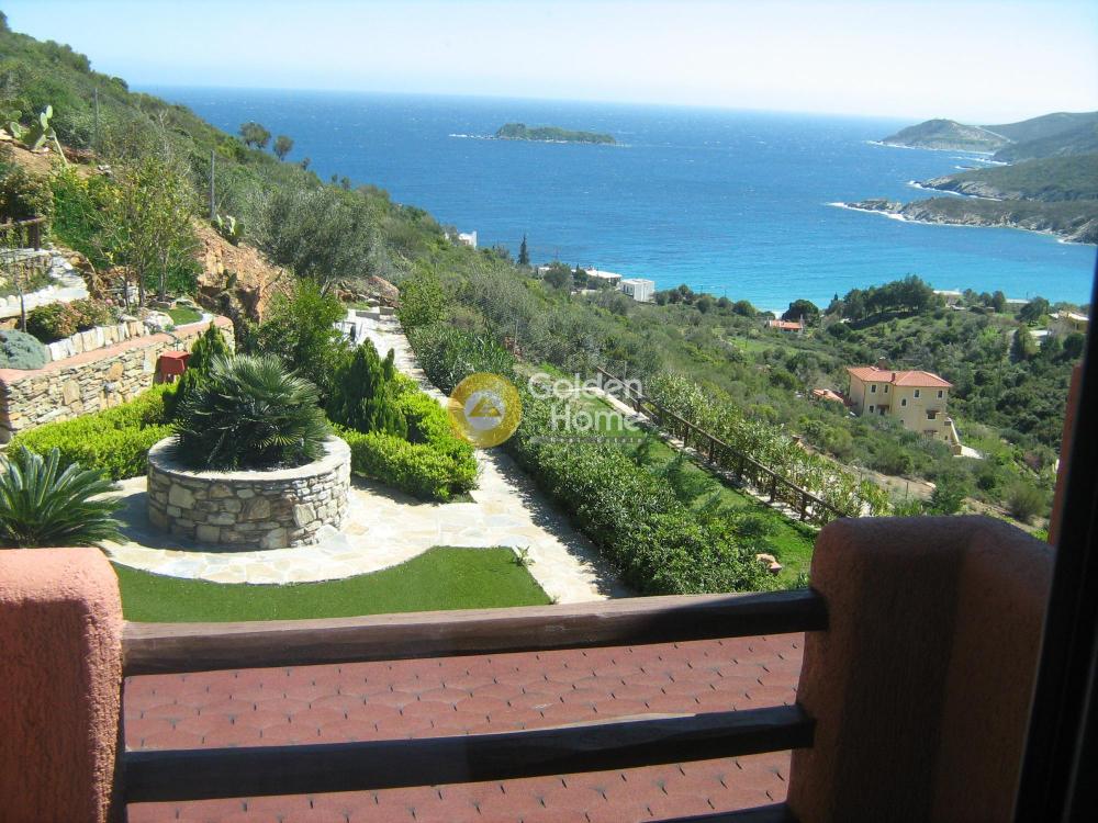 Exceptional villa for a long term lease , overlooking the Aegean. Situated in the eastern part of Evia near the villages of Petries and Ag. Apostoloi, two-floor country house with a magnificent view of the Aegean. One of 7 separate villas in an area of 8.100 m. of well-tended lawn and flower beds. It was built in 2010 and provides 78 sq.m. of useful space with living-room (with built-in sofas with storage capacity and powered fireplace), fully equipped kitchen and WC on the ground floor, 2 bedrooms (with white oak floors and balconies with sea views) and a bathroom on the 1st floor. It has got double-glazed windows with window screens, red tiled roofed patio, a storage room outside the house, BBQ facility, Laura Ashley furnishings throughout the house, air condition units in the bedrooms, parking area. It is a 130 km drive from Athens via Chalkida or a 90 km drive ftom Athens via Eretria ferry port.