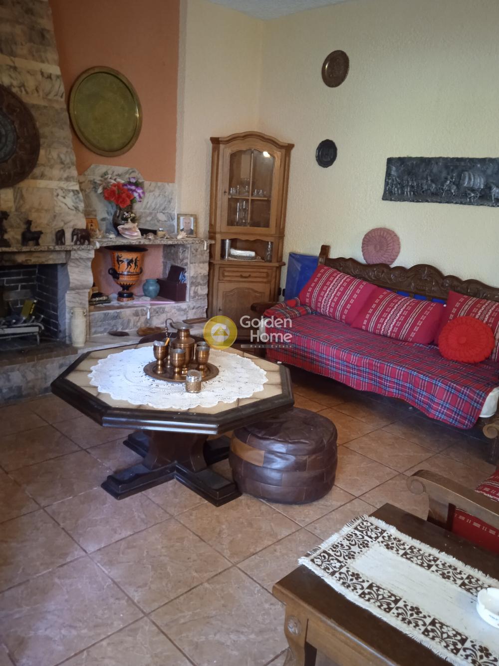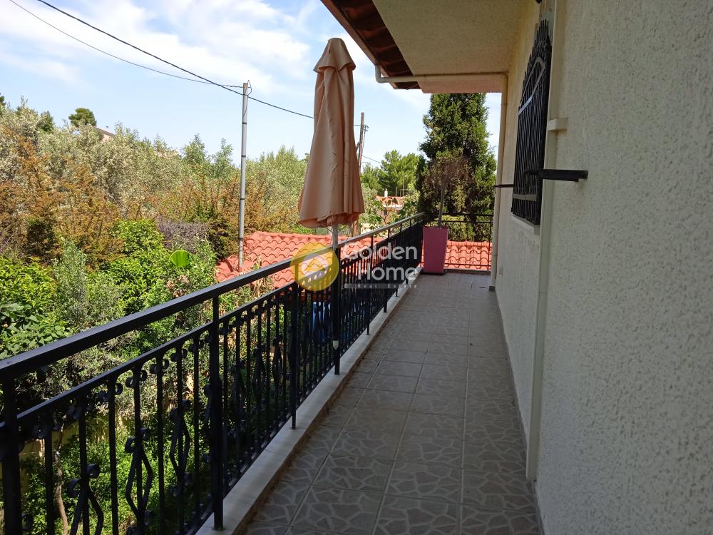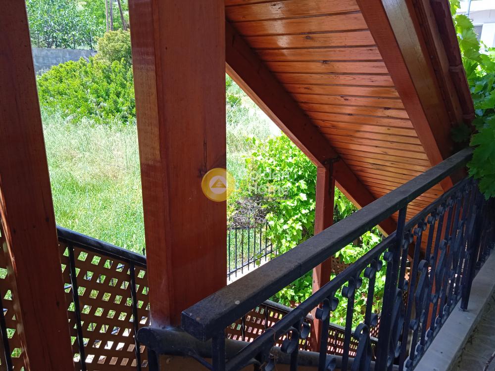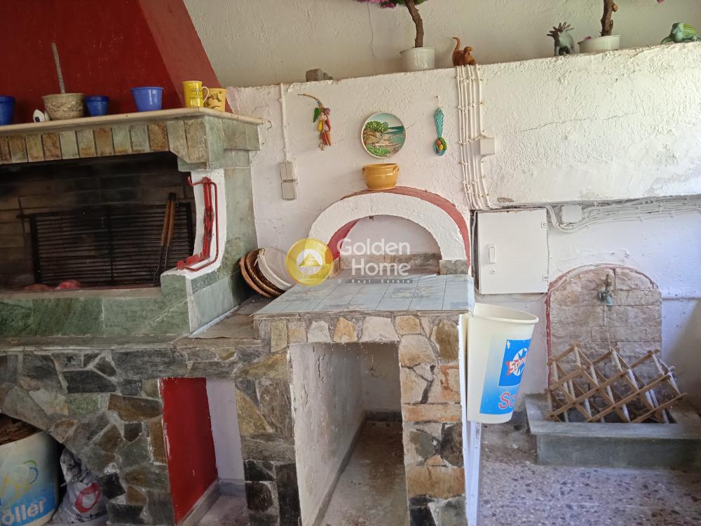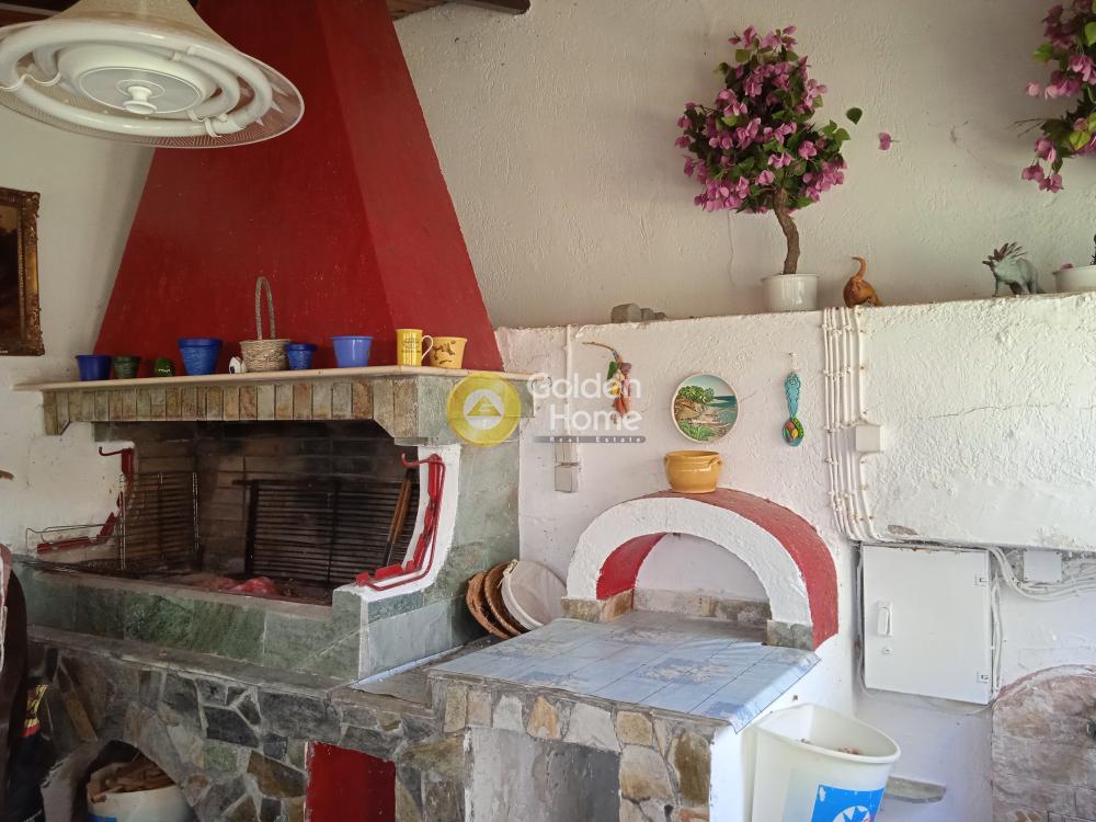 Detached house 300m from the sea in a quiet and green area with a storage like a studio (32sqm) with auxiliary kitchen, built-in grill (BBQ), 3 air conditioners, solar, satellite, radiator (petroil), automatic watering for the garden, alarm, all irons (stairs etc) solid, the roof of the second floor is slab but above it has extra tiles for coolness and insulation, unobstructed view from the first floor, the windows are wooden double glazing special order, all wooden constructions (internal staircase) are solid wood, hidden color lighting in the fountain and the garden. Furnished, most of the ground floor furniture is handmade type Skyrian (living room, dining room, kitchen, daily dining room). Modern bedrooms with double beds and second living room from bamboo on the first floor.