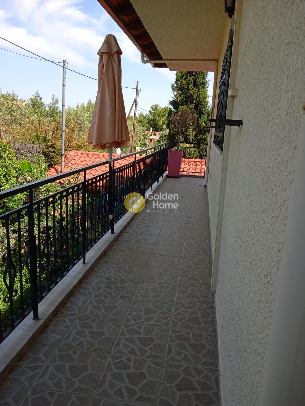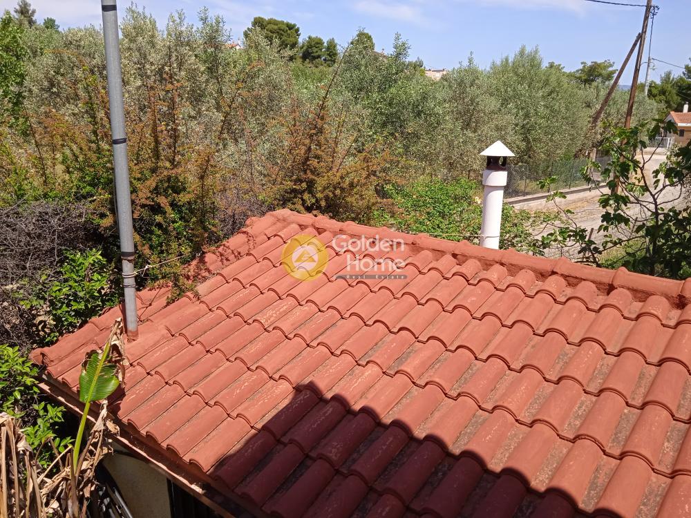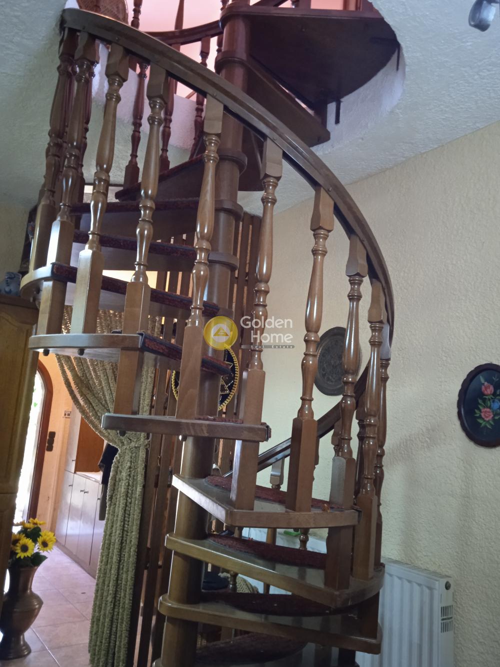 Detached house 300m from the sea in a quiet and green area with a storage like a studio (32sqm) with auxiliary kitchen, built-in grill (BBQ), 3 air conditioners, solar, satellite, radiator (petroil), automatic watering for the garden, alarm, all irons (stairs etc) solid, the roof of the second floor is slab but above it has extra tiles for coolness and insulation, unobstructed view from the first floor, the windows are wooden double glazing special order, all wooden constructions (internal staircase) are solid wood, hidden color lighting in the fountain and the garden. Furnished, most of the ground floor furniture is handmade type Skyrian (living room, dining room, kitchen, daily dining room). Modern bedrooms with double beds and second living room from bamboo on the first floor.