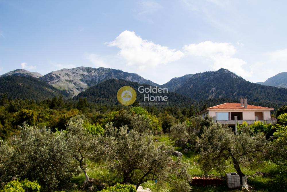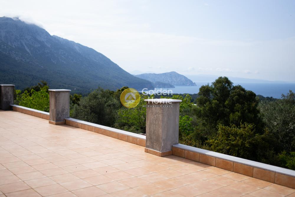 A beautiful family house with high quality materials, built on rock! It is divided into 2 apartments. The one apartment on the ground floor is 97 sq.m. and a 50 sq.m. a covered terrace. It has 2 bedrooms, 1 bathroom, 1 W/C, 1 large kitchen, 1 living room and 1 small storage room. The second apartment on the 1st floor is 156 sq.m. It has 3 bedrooms with either mountain or sea views, 2 of which have their own small private balcony! Huge balcony with overhang of 6.5 meters and terrace of 50 sq.m., overlooking the sea. In addition, it has 1 large kitchen with a balcony, with 1 very small adjacent room provided for the washing machine, 1 bathroom and 1 W/C/. It has very thick walls, with a large tank, the roof is tiled and perfectly insulated, Energy Class A, fireplaces, the windows are Europa brand, windows, shutters and triple layer mosquito nets! In order to complete the construction, it is expected to install the doors (the frames are installed), the kitchens, the furniture of the rooms, regarding the bathrooms and W/C, bathtubs, sinks, etc., switches and sockets, to put in tiles, doors and windows in the lower compartment. The property is located within a plot of 2566 sq.m.