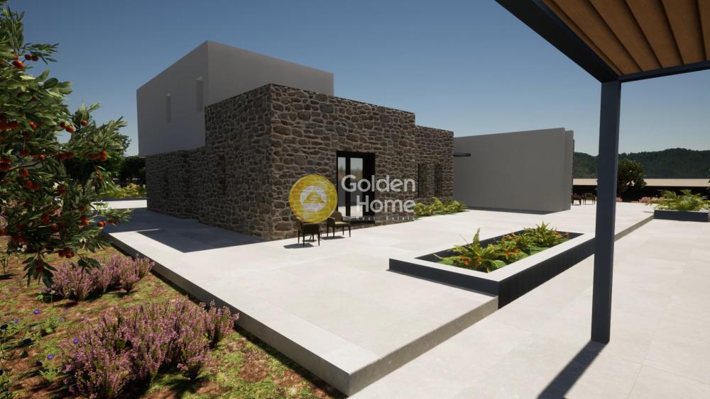 MOLOS: Villa of 240 sqm under construction with two swimming pools and sea view, just 200 m from the beach of Molos. It is in a modern line but with a Cycladic character, built on a huge plot of 6730 square meters with privacy, gardens, a nice orchard with a well. Features: Plot 6730sqm, main house 227sqm, guesthouses 74sqm, patio 75sqm, parking space 63, large pool 24sqm. With 5 bedrooms, including 4 master bedrooms & dressing room, 5 bathrooms, 2 guest houses with their bathrooms, swimming pool and exterior layout of the spaces. Plans can be changed. There are already draft plans for a 280 sq m villa. Project delivery in 12 months