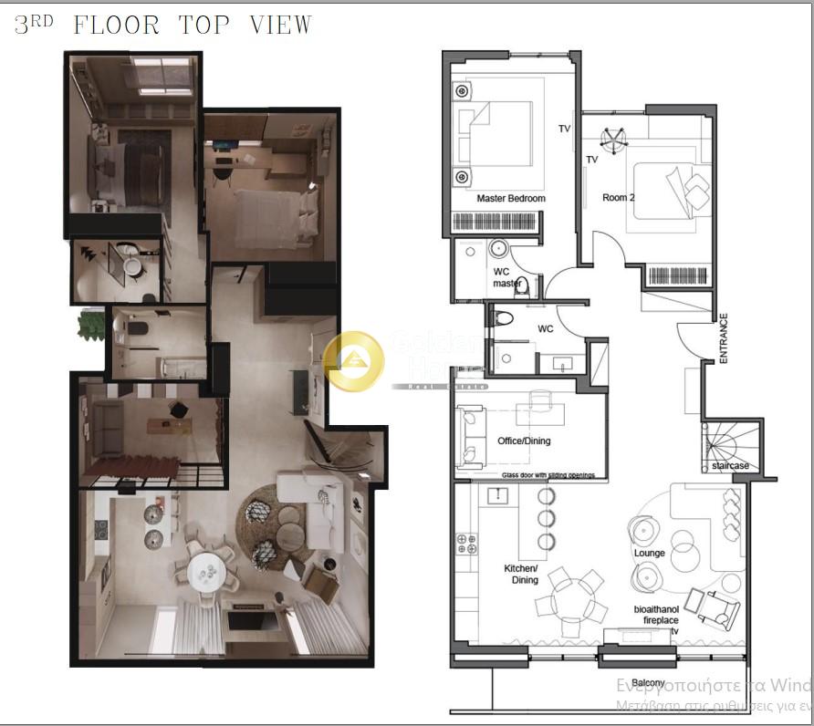 | Balconies : | In the bedrooms, In the living room with view, In the kitchen, Big, Εxclusive use of the terrace |