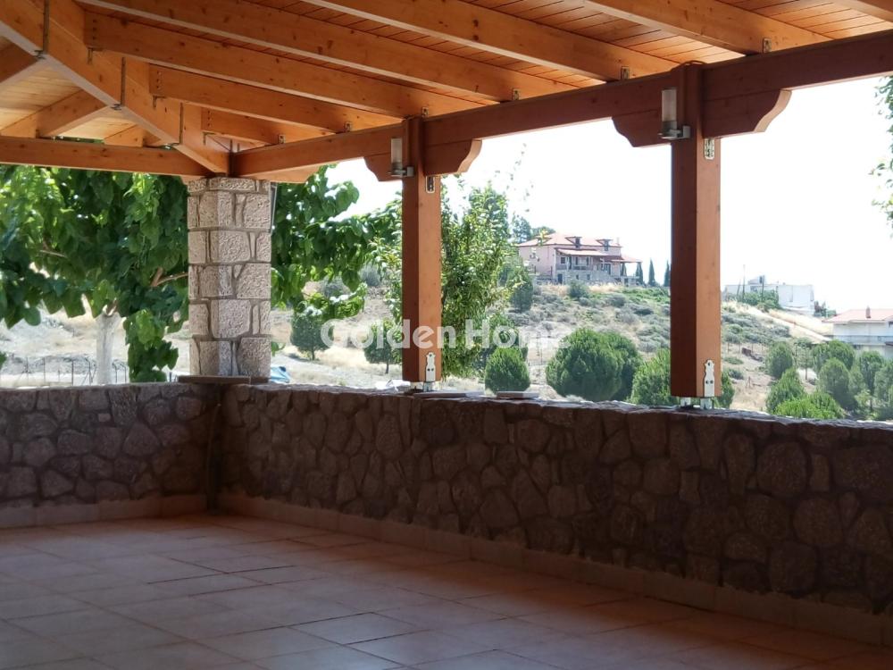 Karavomylos, in a quiet and green environment, a neoclassical-style residence made of stone and wood is available for sale. The property lies on a 9,000 sq.m. plot with an 8,000 sq.m. private garden and offers unobstructed views of the sea, the mountains, and the surrounding natural landscape. The house is bright, airy, and front-facing, with an east–south orientation. A key feature is the energy-efficient solid oak wooden window frames of the latest generation, equipped with double glazing, ensuring excellent insulation, durability, and functionality. Layout 3 spacious bedrooms with double beds and storage, some with access to balconies overlooking the landscape 2 bathrooms with windows and shower cabins Open-plan living room – sitting area – dining room with two fireplaces Bright, modern kitchen, integrated with the dining and living area Office room that can also serve as an additional bedroom 50 sq.m. storage room and a large landscaped outdoor area Features & Equipment Energy Class A Solar water heater and dual-energy boiler Heat accumulation system Computer network and pre-installed telephone system Security alarm with cameras Security door Full household equipment and electrical appliances Outdoor Areas Verandas and balconies totaling 400 sq.m. 400 sq.m. pergolas suitable for gatherings, receptions, or small events 120 sq.m. private rooftop terrace with pergola and views 8,000 sq.m. garden Unlimited outdoor parking spaces plus 3 covered spaces in the pilotis Private access road and two independent entrances for convenient access and flexible use Location The property is located approximately 400 meters from the sea, in a quiet area with abundant greenery and easy access to public transport (buses & intercity coaches). Ideal For Permanent or holiday residence Tourist exploitation Small events, receptions, gatherings Boutique hospitality or wellness retreat