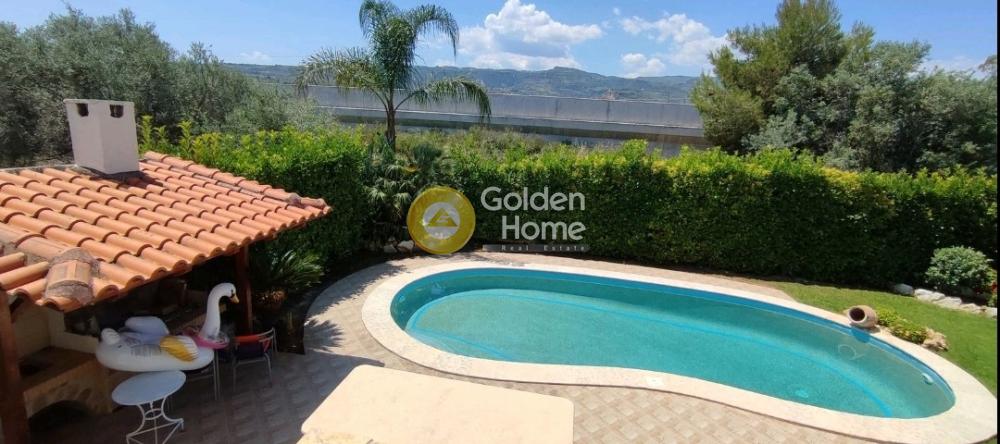 Luxury maisonette of 118sqm, on a well-kept plot of 300m. with lawn, and private pool, very close to the sea. The residence is located in Melissi Xylokastro. It consists of 3 bedrooms, 2 bathrooms, 1 wc, kitchen and storage room. It is spread over 3 levels, has a fireplace in the living room, air conditioning, a security door and autonomous heating with a central installation. It is given furnished and is suitable for a holiday home or for a permanent residence as this area is only 120Klm from Athens
