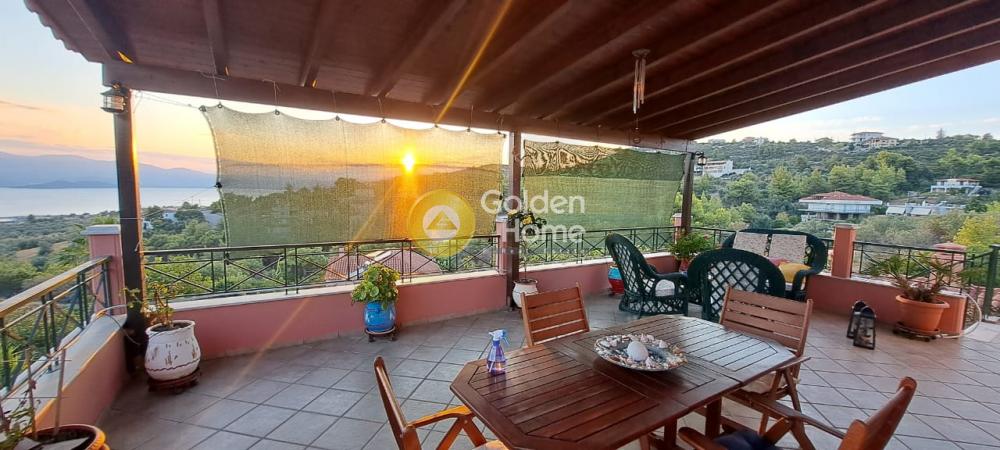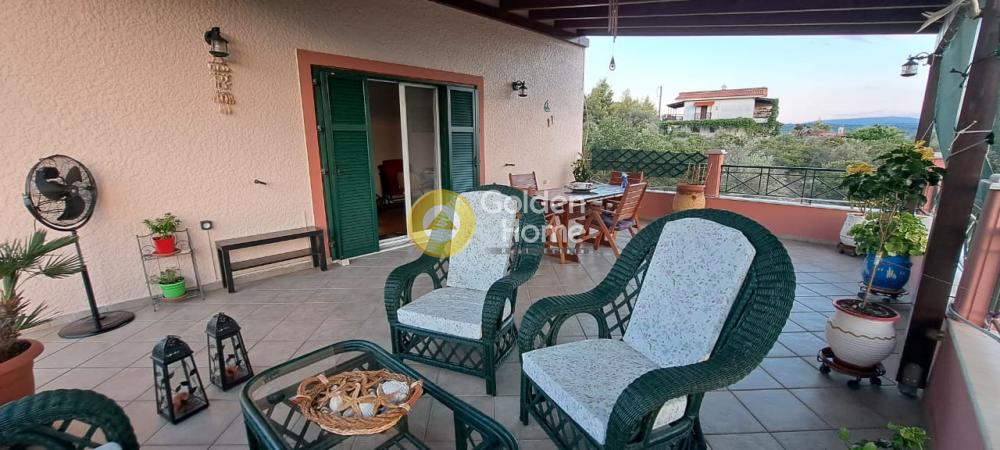THEOLOGOS - OSMAES SETTLEMENT, Detached house 206sqm on a plot of 1.160sqm, year 2001 in Excellent Condition. It consists of a maisonette of 122 sq m and a pilot house of 84 sq m which has been legalized to become an apartment. 3 bedrooms, storage / laundry, 2 bathrooms, fireplace, radiator / oil heating, 4 A/C, ceiling fans, security door, alarm, boiler + water heater for hot water, BBQ + wood oven, automatic watering, 2 water tanks, external storage / boiler room. Huge terraces with an incredible view of the port and the Gulf of Theologos!! It is sold fully furnished and equipped with all electrical appliances.