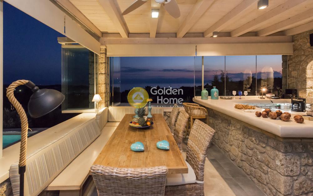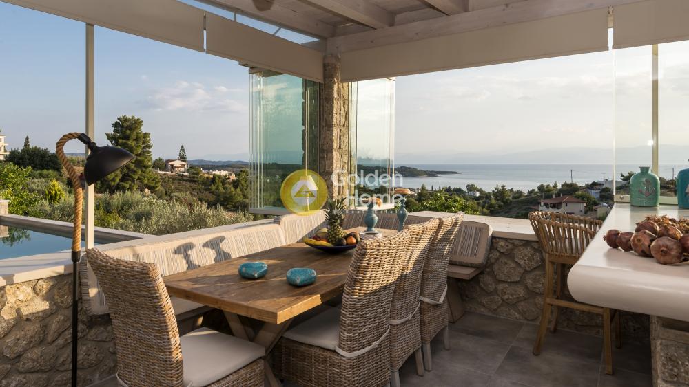 This impressive villa has a total size of 210 sq.m. and is located on a privileged plot of 2200 sq.m. The villa is divided into three levels and is designed so that all rooms have unlimited views of the sea and the pool area, providing constant contact with nature. The first level has a comfortable living room with a fireplace, a dining room, a fully equipped kitchen, a guest wc and a storage room. The second level offers two bedrooms and a bathroom. The ground floor is an independent apartment consisting of one bedroom, one bathroom and a fully equipped kitchen. Within the plot is a guest house, fully equipped and self-contained. The outdoor area consists of the pool area, a pool bar, a living room equipped with comfortable sofas, a barbecue area, the outdoor dining area and the parking area. Just a few minutes by car from the center of Porto Heli. The cosmopolitan island of Spetses is only 10 minutes away by water taxi.