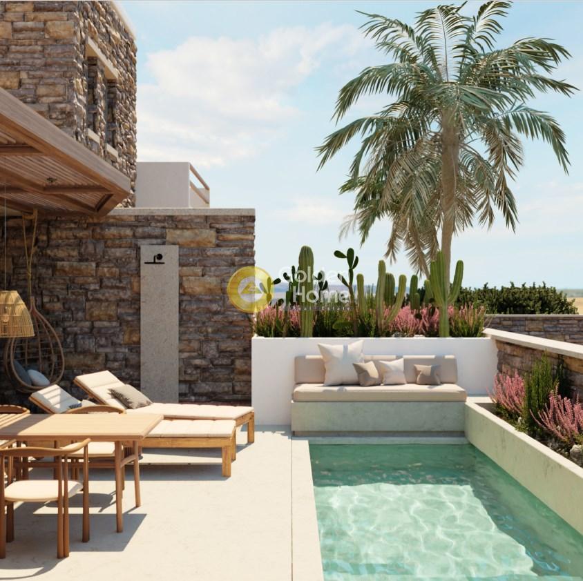 This is a complex of villas in a beautiful location on the area of Punda in Paros. It represents the ideal combination of minimalistic and the traditional cycladic architecture. Materiality and textural variety unfold this approach, while a combination of carefully selected semi tropical plants and Mediterranean herbs, allow the landscape design to add drama and a poetic interplay of light and shadows. Each villa is totally autonomous. Higly functional spaces. Green private zones. Private swimming pools. Private yard - garden.