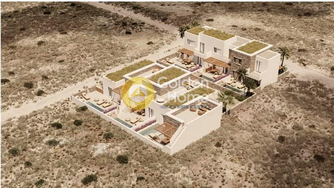 This is a complex of villas in a beautiful location on the area of Punda in Paros. It represents the ideal combination of minimalistic and the traditional cycladic architecture. Materiality and textural variety unfold this approach, while a combination of carefully selected semi tropical plants and Mediterranean herbs, allow the landscape design to add drama and a poetic interplay of light and shadows. Each villa is totally autonomous. Higly functional spaces. Green private zones. Private swimming pools. Private yard - garden.