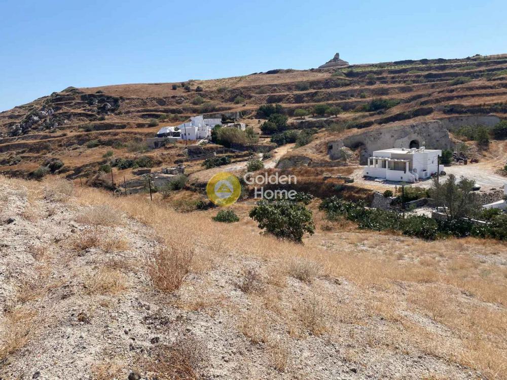 Santorini Emporio plot 3570sqm, even and buildable, within the settlement, frontage, amphitheater, sea view, access by road.