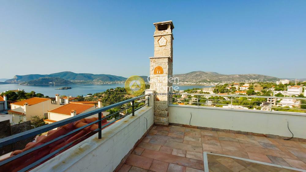 Maisonette with unlimited views to Evia tza in the area of Porto Rafti in a quiet area with safe guarding due to Apollonius Basement 129 sqm but due to sloping ground it is 3 floors ready, with 90 sqm single space consisting of a kitchen living room dining room with a fireplace 3 rooms 1 bathroom very large ultra-luxury with jacuzzi in the bedroom and 2 storage rooms Stairs with oak wood and elevator with door, the chamber and the mechanism are unfinished, security door. 1 floor and 2 second are incomplete, electrically and plumbing with aluminum doors finished, only the interior needs arrangement