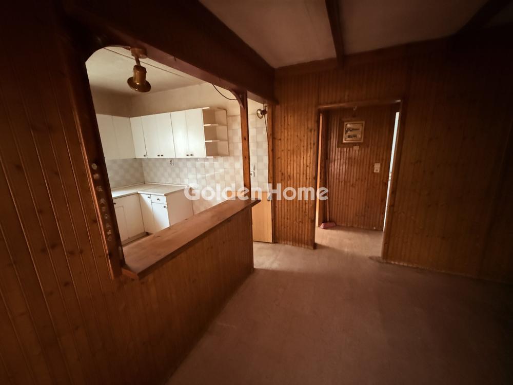 A prefabricated detached house built in 1997 is available for sale in the area of Zofria. The house has a total area of 67 sq.m. and consists of 2 bedrooms, a bathroom, kitchen, living room, and storage room. It also features autonomous oil heating and an open parking space. The interior is fully lined with wooden raboté paneling in a rustic style, creating a warm and distinctive living environment. The property requires partial renovation, mainly in the aluminum window frames, kitchen, and wardrobes, allowing the new owner to renovate and customize it according to their preferences. The plot has a total area of 150 sq.m. and includes a recent topographical survey stating that the permitted building limit reaches 120 sq.m. Therefore, there is the possibility to extend the existing house either on the current ground level or by adding an additional floor. The property is located in a quiet neighborhood with park views and direct proximity to green space. It is also close to schools, sports facilities, tutoring centers, a music conservatory, and a theater, making it an ideal choice for families or as an investment property.