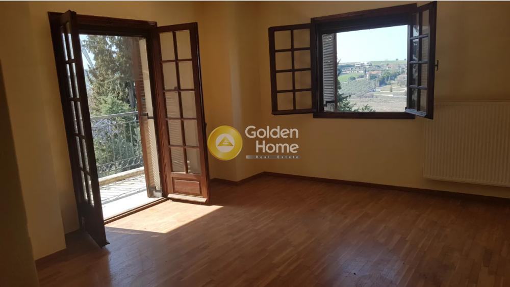 Plagiari Thessaloniki, detached house of 340sqm for sale, 3 levels with 3 bedrooms (one of them master), 2 bathrooms, 1 WC, kitchen, living room - dining room, perimeter terraces, large storage room, autonomous heating with oil burner. The property is located on a plot of 3230 square meters with approximately 150 trees (olives and fruit trees), it has a panoramic view of Thermaikos, Hortiatis and the city of Thessaloniki, and it is only 15 minutes from the Airport.