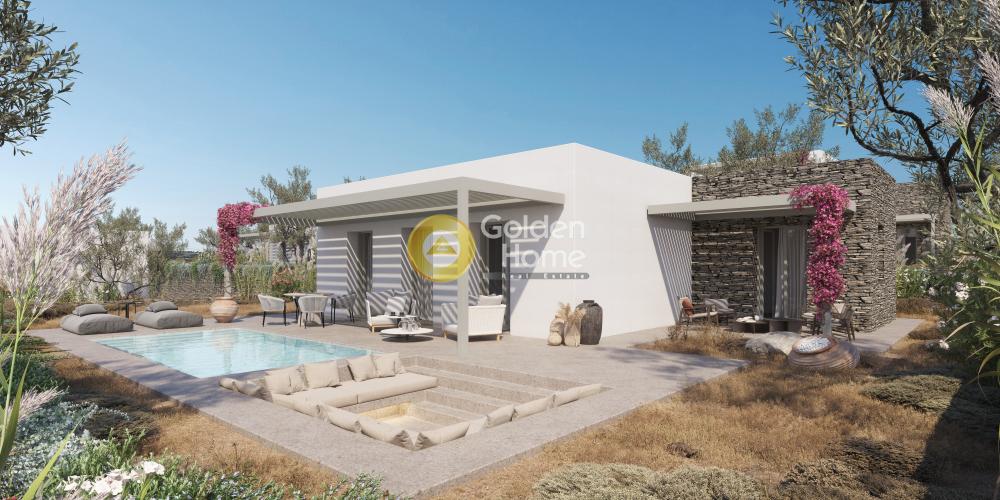 PAROS, GLYSIDIA. This beautiful and functional 144sqm detached house UNDER CONSTRUCTION, featuring an 18sqm swimming pool and easy access in a plot of 548sqm, is indeed an attractive prospect for potential buyers. The added bonus of sea views and the tranquility of the area enhances its appeal even further. Customization options are a significant advantage, allowing buyers to tailor the space to their specific needs. The projected completion within 20 months is reasonable and provides a clear timeline for interested parties. With a spacious ground floor encompassing a living room, dining room, kitchen, and 3 master rooms, along with parking spaces and an engine station, the property offers both comfort and practicality.