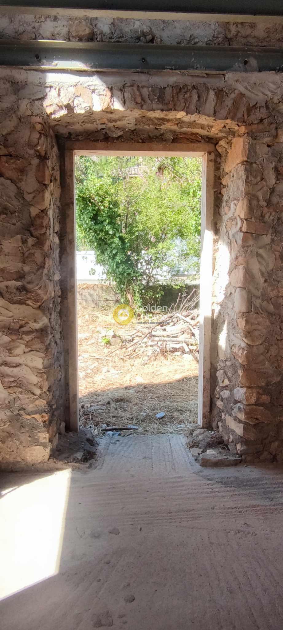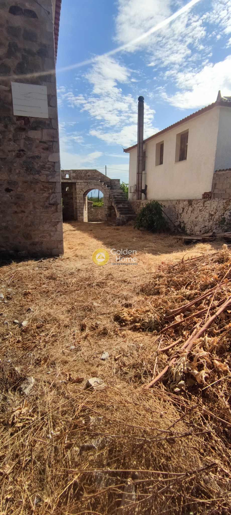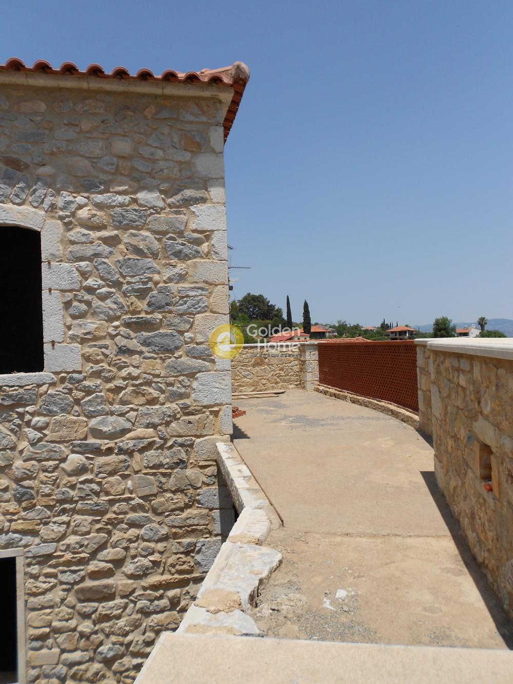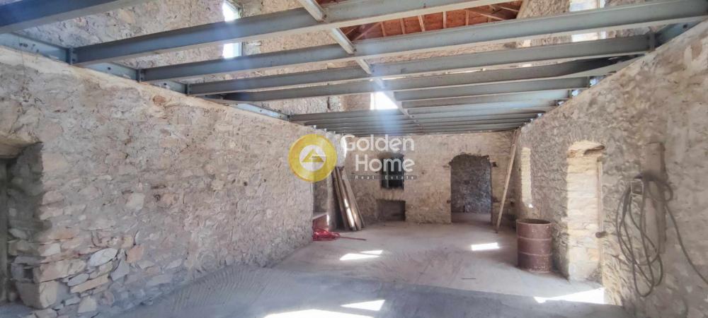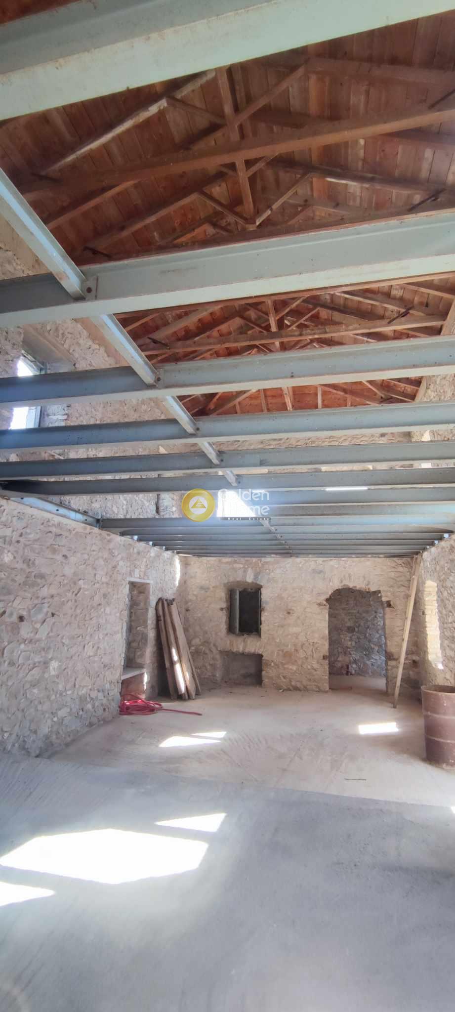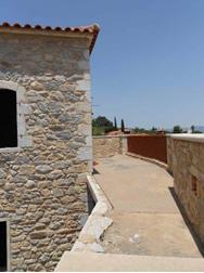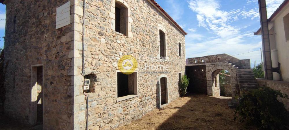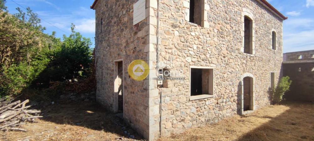One of the best examples of an old 2-storey stone house of the Laconia region. Originally built around 1900, the house main core has been recently restored by its owner, established since 2008 in Sparta. The house also has small extensions , the veranda on the upper floor, with view to the Parnonas Mountains… as well as the stone stair leading to it, which also includes the eastern entrance to the house courtyard on ground level. The roof and the upper floor steel structure are new, as well as the external staircase. Washing and rejointing of the facades has been done with special care. The concrete floor on ground level is ready. A detailed architectural project foresees a big kitchen and the main bedroom with bathroom on ground level and a unique multifunctional room on upper level. The building permit of 2010 includes not only the restoration of the old house but also an extension on ground level with as a small basement. This extension has not been realized until now; it would allow a substantial increase of the house surface and functions.