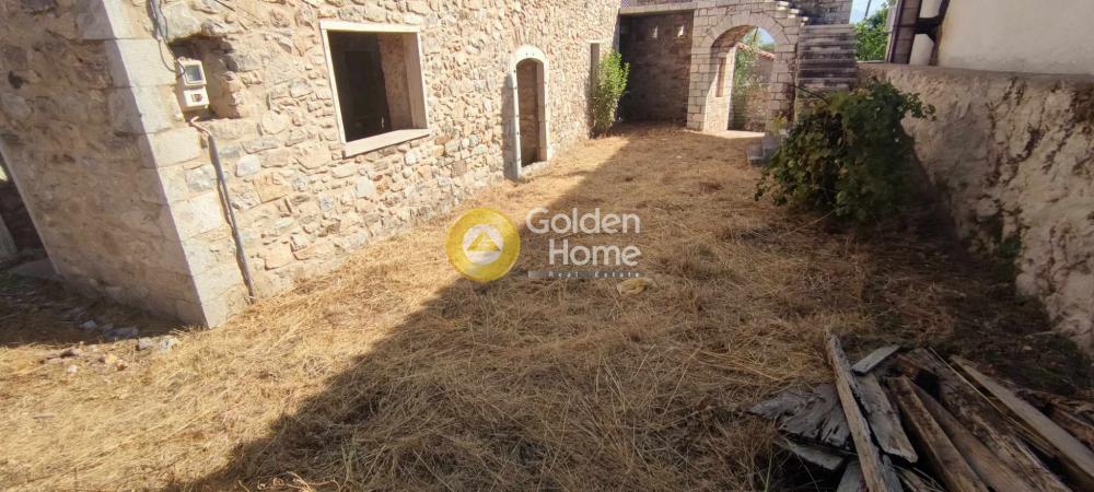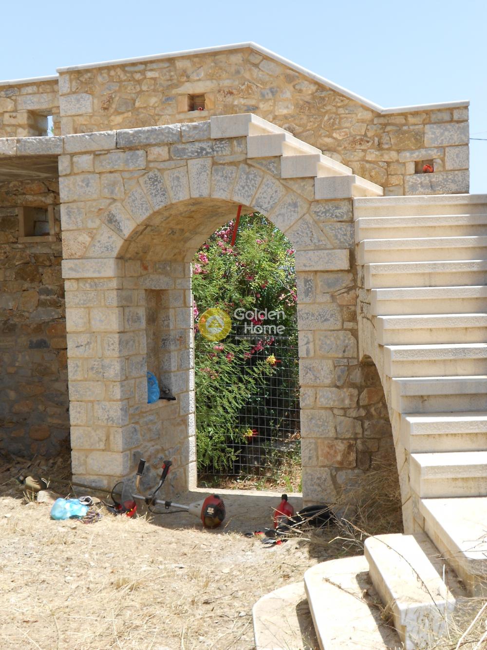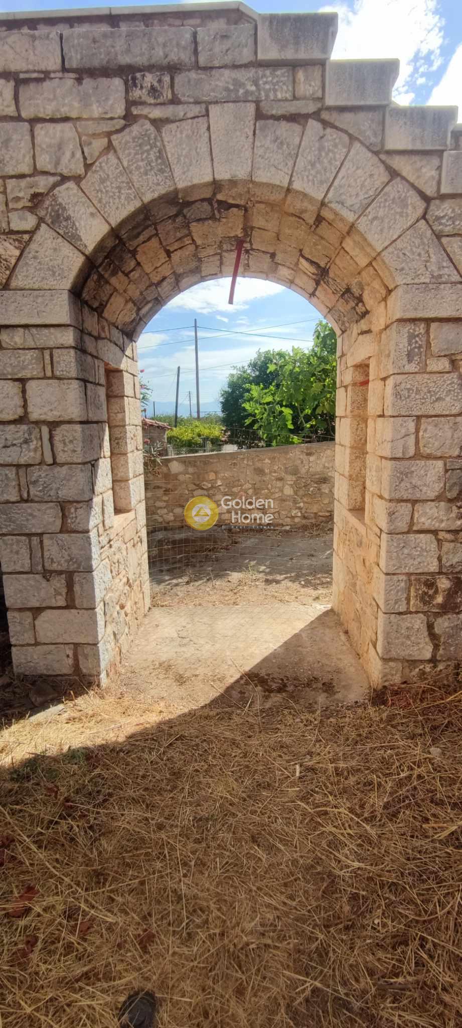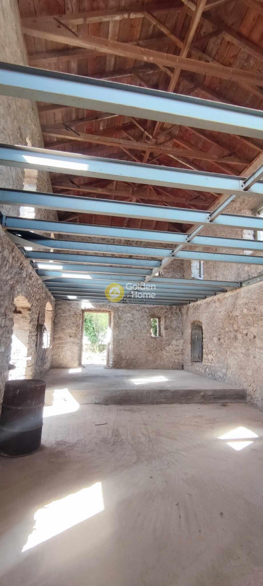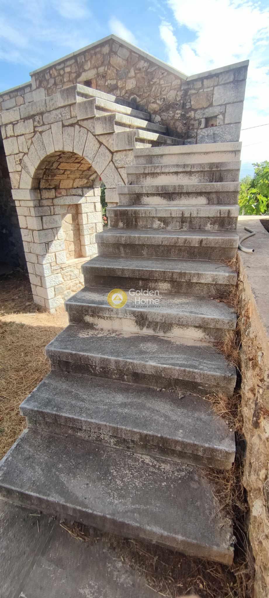 One of the best examples of an old 2-storey stone house of the Laconia region. Originally built around 1900, the house main core has been recently restored by its owner, established since 2008 in Sparta. The house also has small extensions , the veranda on the upper floor, with view to the Parnonas Mountains… as well as the stone stair leading to it, which also includes the eastern entrance to the house courtyard on ground level. The roof and the upper floor steel structure are new, as well as the external staircase. Washing and rejointing of the facades has been done with special care. The concrete floor on ground level is ready. A detailed architectural project foresees a big kitchen and the main bedroom with bathroom on ground level and a unique multifunctional room on upper level. The building permit of 2010 includes not only the restoration of the old house but also an extension on ground level with as a small basement. This extension has not been realized until now; it would allow a substantial increase of the house surface and functions.