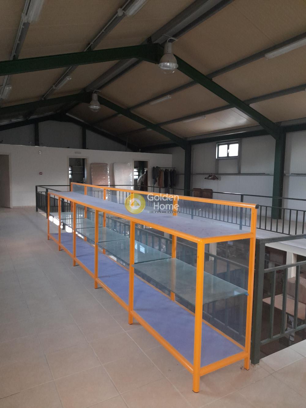 For rent, a modern, independent, 550m2 commercial building in Fodele, Heraklion. It is of high-standard metal construction and consists of three levels, ground floor, first floor and semi-basement. It has large metal doors for loading and unloading goods, an internal staircase, office space with toilet and large rooms. It is located in a key point, close to the Northern road axis, within a fenced plot of 4000m2 and is suitable for many professional activities.