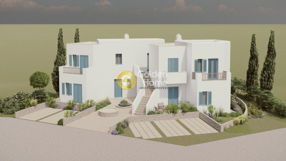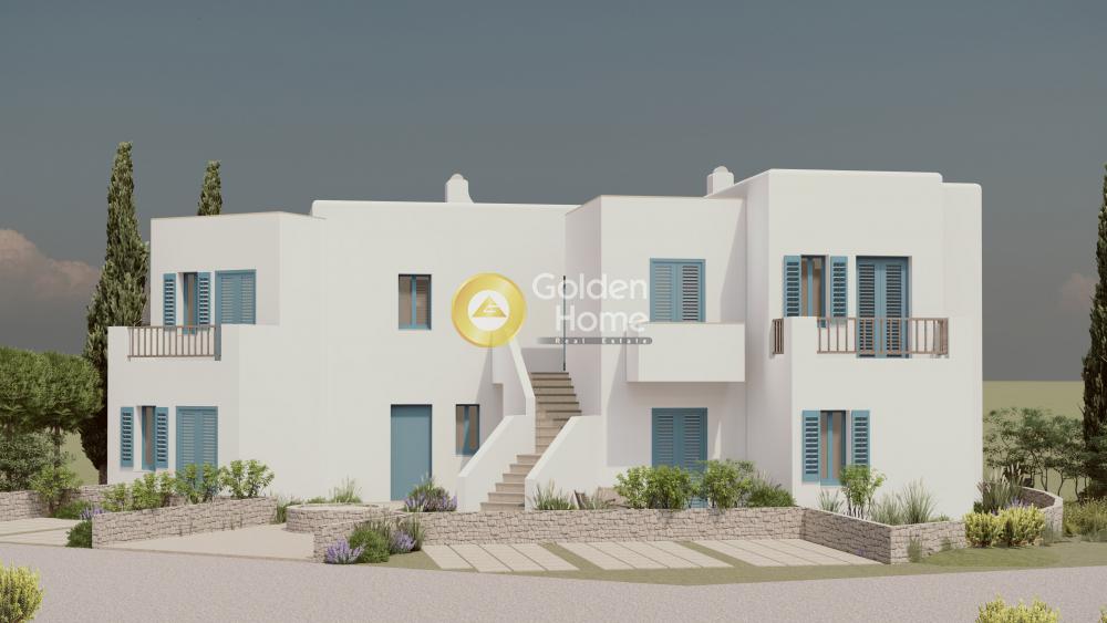 First-floor apartment of 58 sq.m. under construction in a residential complex a short distance from the beach of Molos, one of the most authentic beaches of Paros. It is located on the upper level and features a functional living room integrated with the dining area and kitchen, 2 bedrooms, 1 bathroom, 2 verandas of total 16 sq.m., a separate 3 sq.m. balcony, and 1 parking space of 10 sq.m. The apartment is sold furnished and equipped, and the buyer is provided with a three-year rental guarantee with a 3% return on the property price. The complex is surrounded by colorful communal gardens and has a communal swimming pool. Expected delivery in July 2026.
